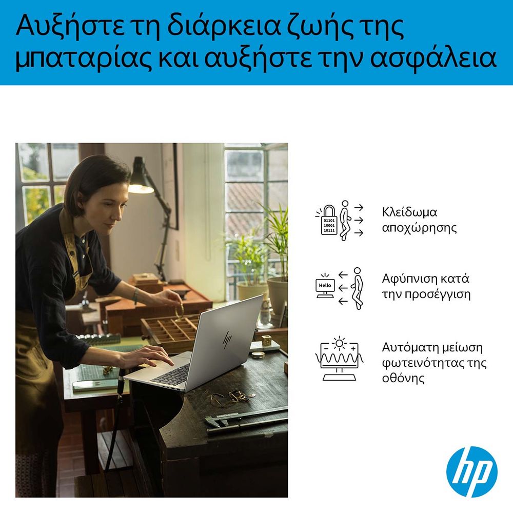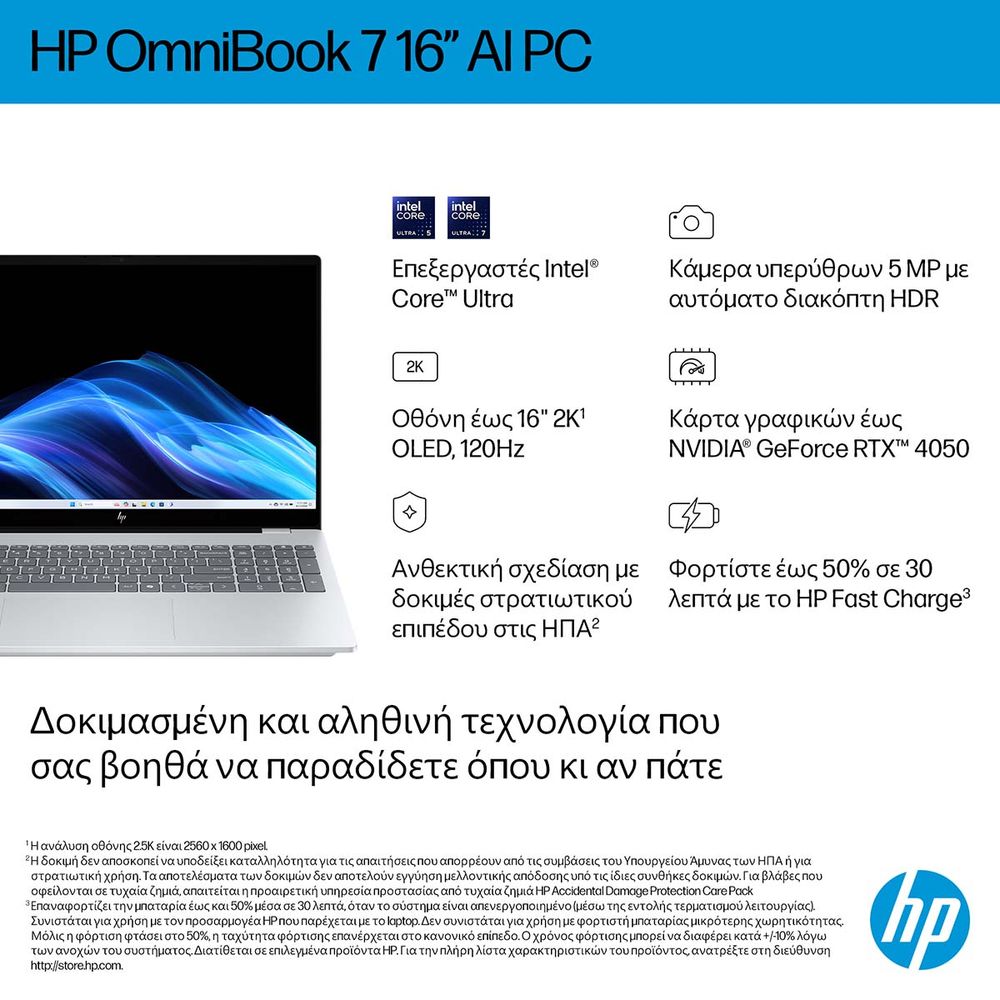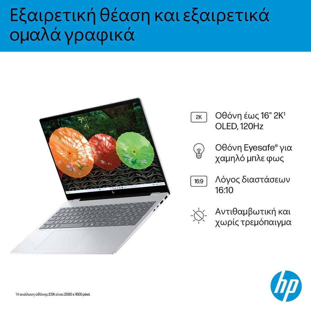 Το HP OmniBook 7 AI 16-ay0000nv συνδυάζει ισχύ, ευφυΐα και ποιότητα. Με επεξεργαστή Intel Core Ultra 7, εντυπωσιακή 16" OLED οθόνη HDR με λόγο 16:10 και χώρο χρωμάτων DCI-P3 100%, προσφέρει μοναδική εμπειρία θέασης. Η κάμερα 5MP IR με Poly Camera Pro, τα διπλά ηχεία DTS:X, η 1TB SSD αποθήκευση και η Wi-Fi 6E συνδεσιμότητα το καθιστούν ιδανικό για δημιουργία, εργασία και ψυχαγωγία με ταχύτητα και ασφάλεια.