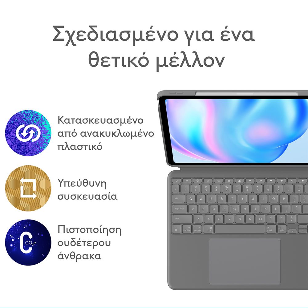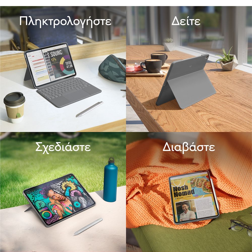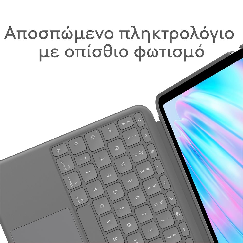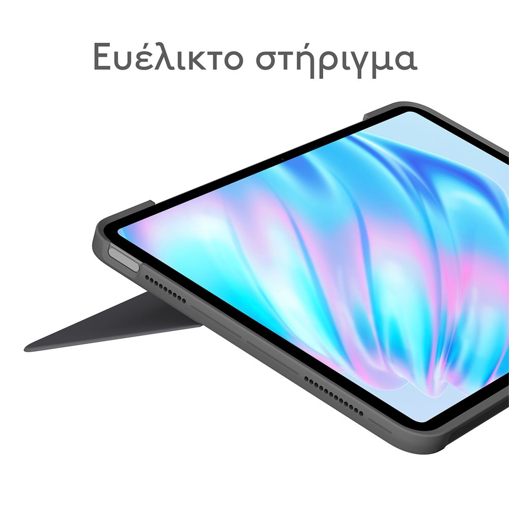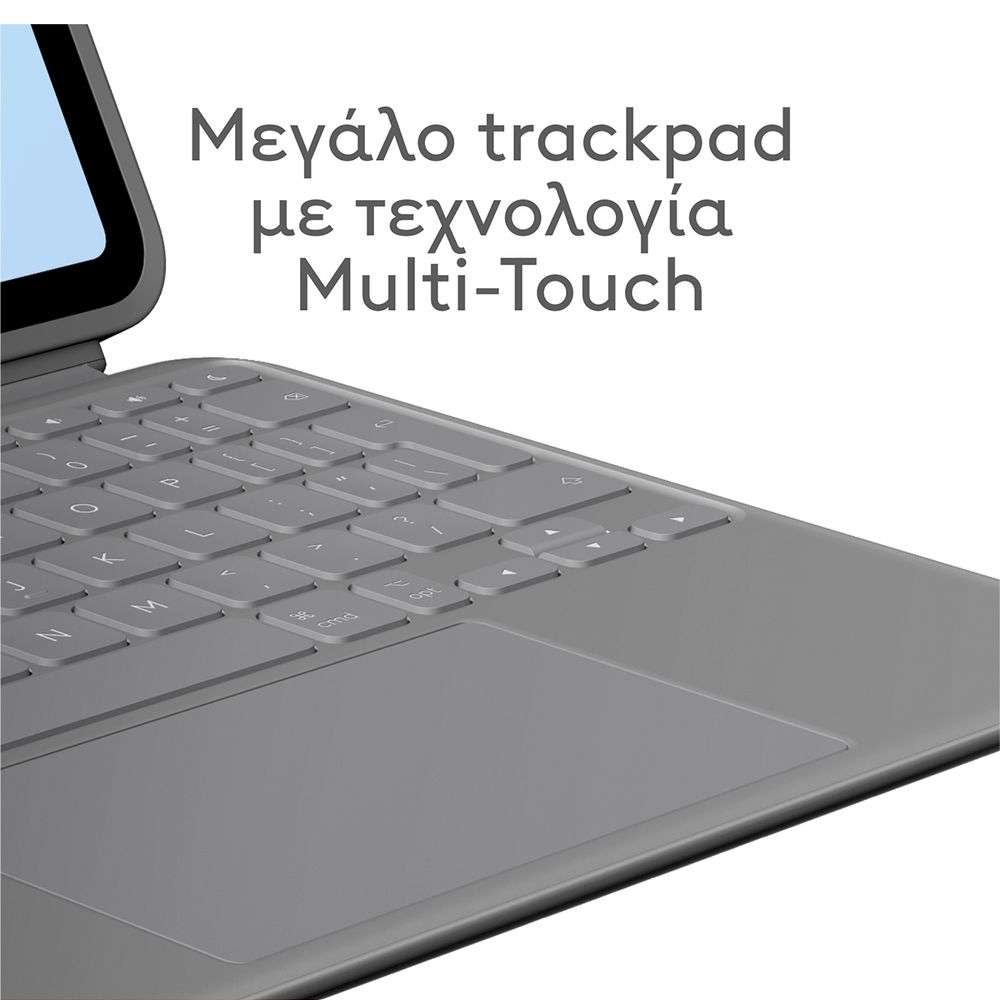 Πληκτρολόγησε, σχεδίασε, παρακολούθησε και διάβασε με τη θήκη-πληκτρολόγιο Combo Touch. Το ευέλικτο στήριγμα και το αποσπώμενο πληκτρολόγιο πλήρους μεγέθους προσφέρουν πολλές λειτουργίες χρήσης για οποιαδήποτε εργασία. Επέκτεινε τις δυνατότητες του iPad με το μεγαλύτερο trackpad το οποίο προσφέρει μια ανώτερη, διαισθητική εμπειρία παρακολούθησης κίνησης χάρη στον γνώριμο έλεγχο μέσω κινήσεων που παρέχει η τεχνολογία Multi-Touch.