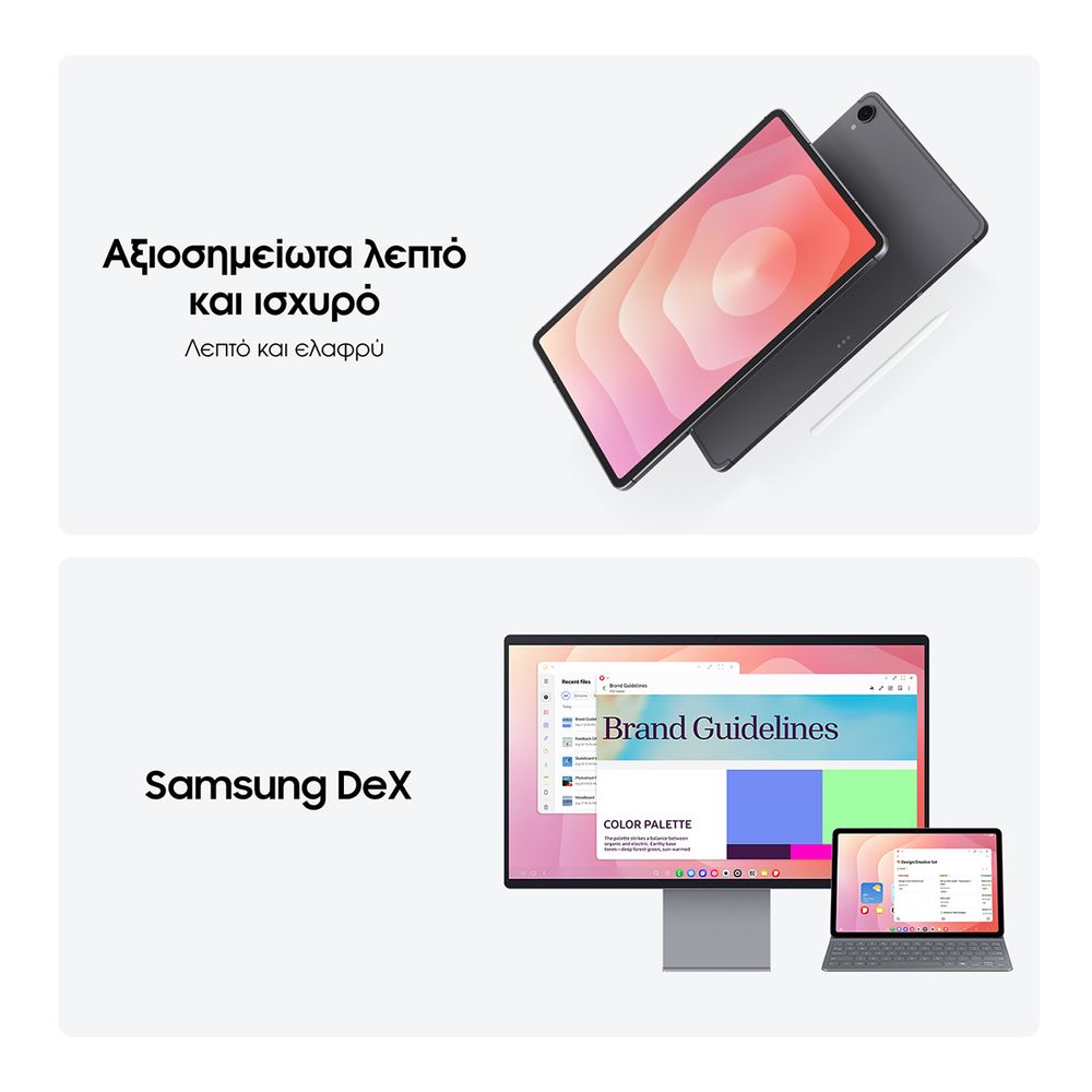 Αναβάθμισε την καθημερινότητά σου με το Galaxy Tab S11 – το tablet που συνδυάζει κομψότητα και δύναμη. Με οθόνη 11’’ Dynamic AMOLED 2X, ανάλυση 2560×1600 και ρυθμό ανανέωσης 120Hz, απολαμβάνεις εικόνα ζωντανή και καθαρή σε κάθε περιβάλλον, χάρη και στην αντιανακλαστική επίστρωση. Ο πανίσχυρος επεξεργαστής 3nm Dimensity 9400+, το ταχύτατο Wi-Fi 6E και η μπαταρία 8.400mAh σου δίνουν ελευθερία. Με Galaxy AI, νέο S Pen IP68 και DeX, κάθε ιδέα γίνεται δημιουργία – όπου κι αν βρίσκεσαι.