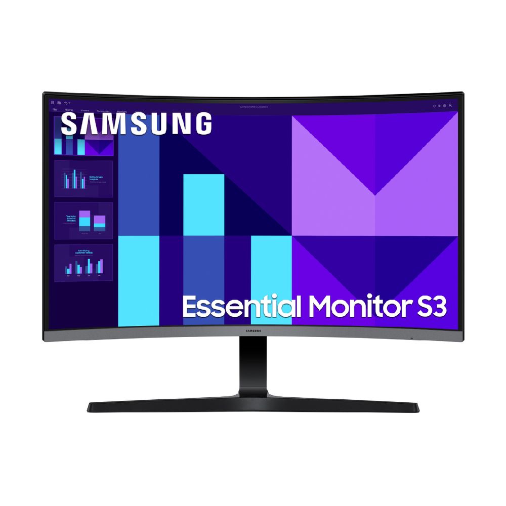 Η κυρτή οθόνη Samsung 27" Essential Monitor S3 είναι ιδανική για άνετη εργασία, ψυχαγωγία και gaming. Διαθέτει VA LED πάνελ Full HD με ανάλυση 1920 x 1080 pixels, καμπυλότητα 1800R, ρυθμό ανανέωσης 100Hz και χρόνο απόκρισης 4ms για ομαλή και καθαρή εικόνα. Τα ενσωματωμένα ηχεία, το Eye Saver Mode και η τεχνολογία Flicker Free προσφέρουν ξεκούραστη θέαση, ενώ το Eco Saving Plus συμβάλλει στη χαμηλότερη κατανάλωση ενέργειας.