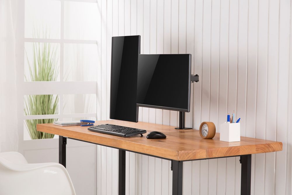 Υποστηρίζει VESA 75x75 και 100x100. Επίσης, διαθέτει περιστρεφόμενο εύρος ± 90°, δυνατότητα περιστροφής οθόνης ± 180° και εύρος κλίσης ± 45°.