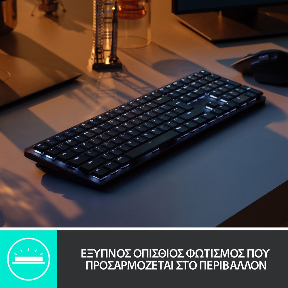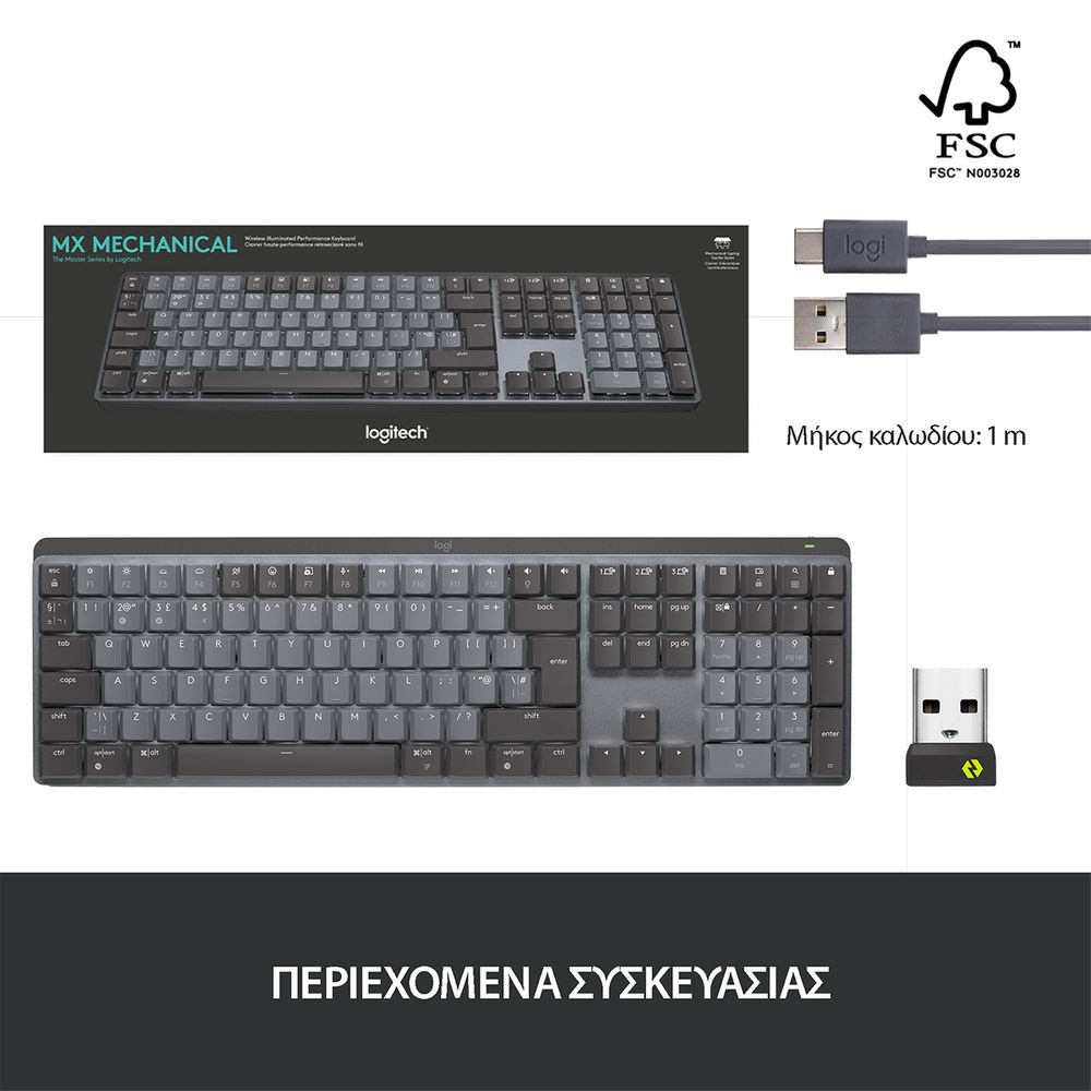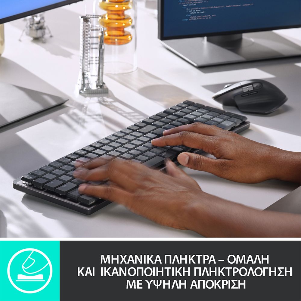 Παρουσιάζουμε το MX Mechanical, ένα ασύρματο πληκτρολόγιο πλήρους μεγέθους με εξαιρετική αίσθηση, ακρίβεια και επιδόσεις. Η μηχανική πληκτρολόγηση χαμηλού προφίλ προσφέρει απολαυστική αίσθηση με τους αθόρυβους-απτικούς (brown) διακόπτες πλήκτρων. Το MX Mechanical έχει κατασκευαστεί για εργονομική άνεση, με έξυπνο φωτισμό και Easy-Switch, ώστε να σου επιτρέπει να συνδέεις έως 3 συσκευές και να διατηρείς τη ροή εργασίας σου για ώρες.