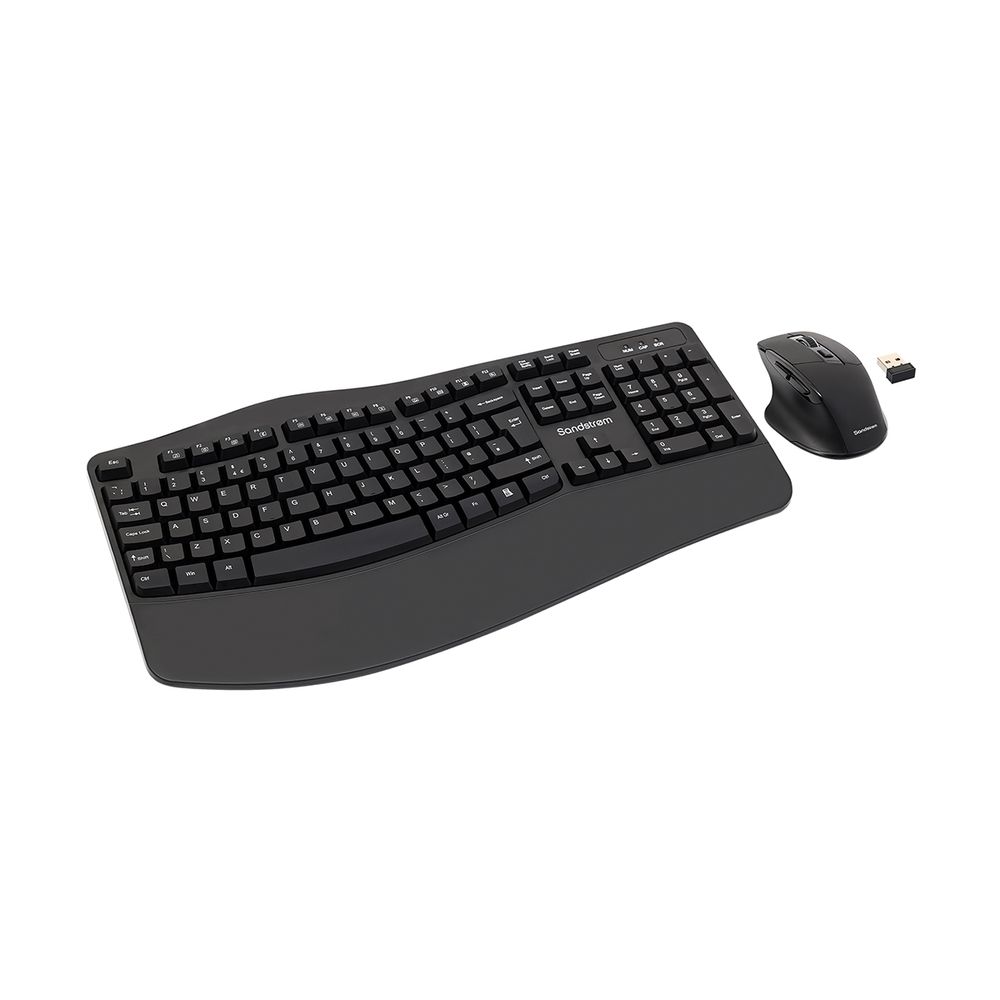 Εργονομικό ασύρματο πληκτρολόγιο 2,4GHz, εργονομικό ποντίκι 6 κουμπιών με scroll wheel, ένας nano δέκτης για το πληκτρολόγιο και το ποντίκι, 800/1200/1600 DPI, 2x AA μπαταρίες.