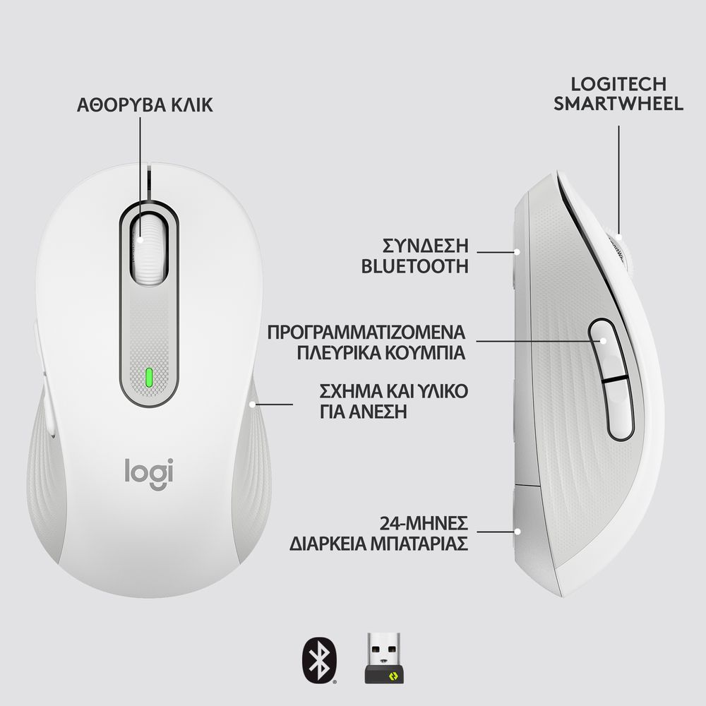 Logitech Signature M650 L Off White Ασύρματο Ποντίκι