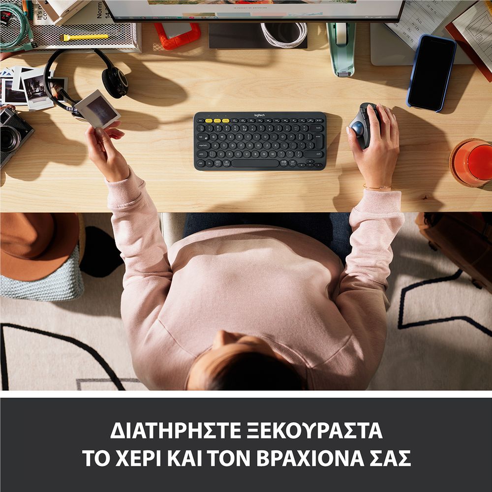Ελαχιστοποίησε την κίνηση και μεγιστοποίησε την άνεση με το ERGO M575 – ένα ασύρματο trackball με εργονομικό σχήμα. Επειδή δεν χρειάζεται να κινείς τον βραχίονα για να μετακινείς τον δείκτη, το χέρι και ο βραχίονας παραμένουν ξεκούραστα. Έχεις ακριβή, ομαλό και άμεσο έλεγχο του δείκτη σε κάθε επιφάνεια. Σύνδεση μέσω Bluetooth Low Energy ή με τον παρεχόμενο δέκτη USB.