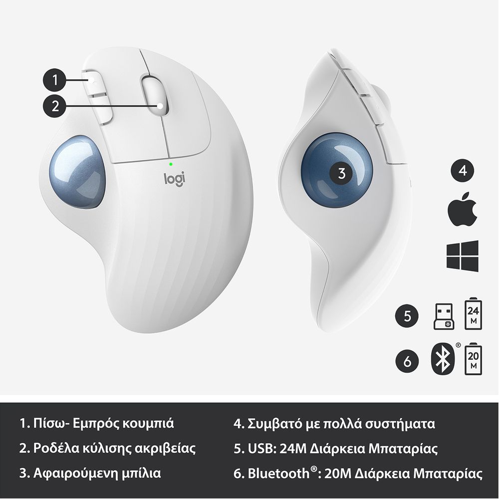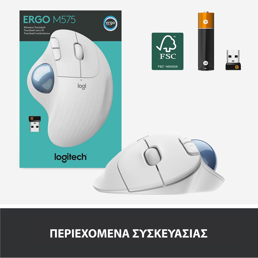Logitech M575 Wireless White Ασύρματο Ποντίκι
