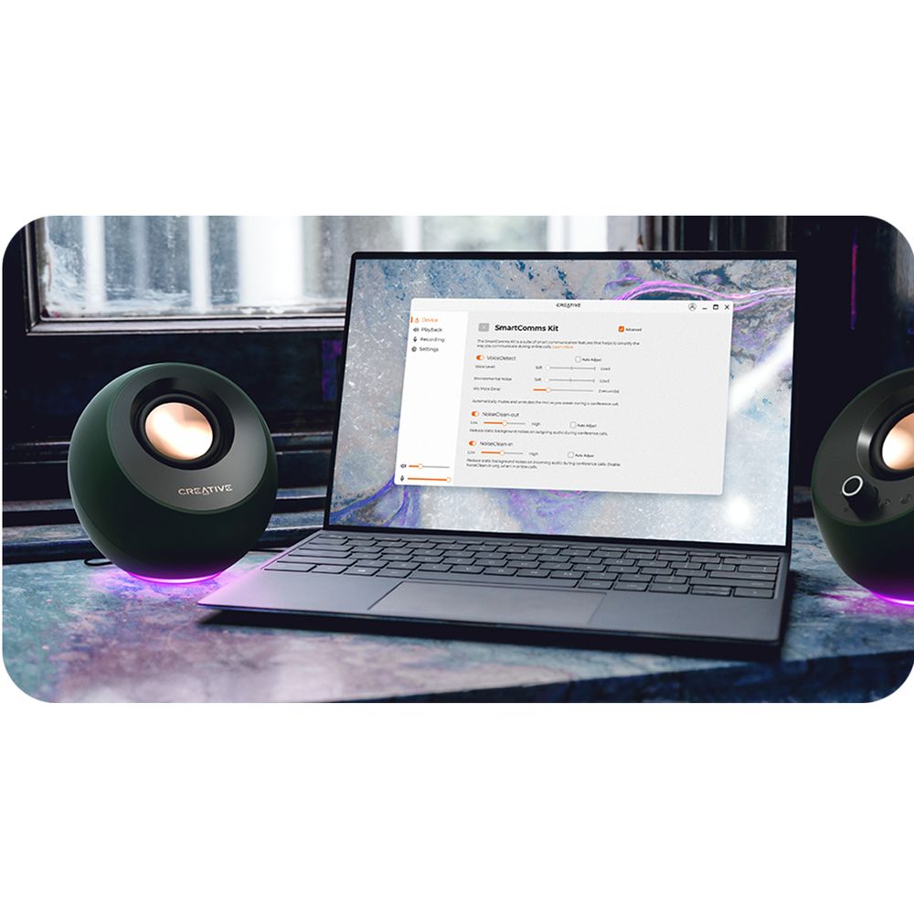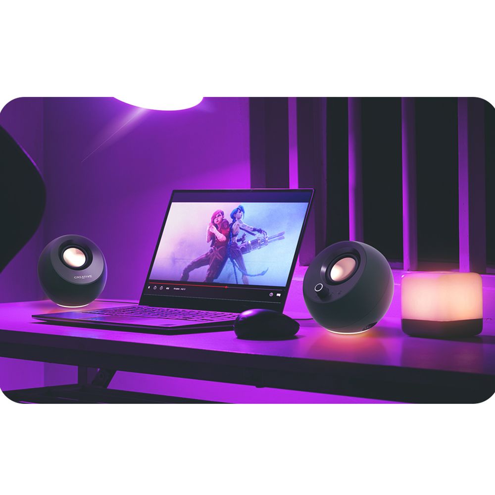 Τα Creative Pebble Pro προσφέρουν εντυπωσιακό ήχο και φωτισμό RGB με τρία εφέ για να ταιριάζουν στο setup σου. Διαθέτουν επανασχεδιασμένους drivers, ψηφιακούς ενισχυτές και τεχνολογίες BassFlex και Clear Dialog για βαθιά μπάσα και καθαρούς διαλόγους. Με γωνία 45° για ιδανική κατεύθυνση ήχου και συνδέσεις USB, Bluetooth και AUX, είναι μικρά σε μέγεθος αλλά μεγάλα σε απόδοση.
