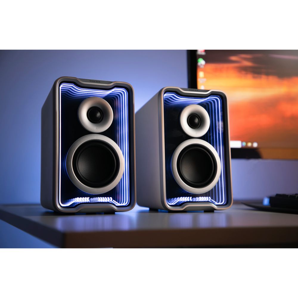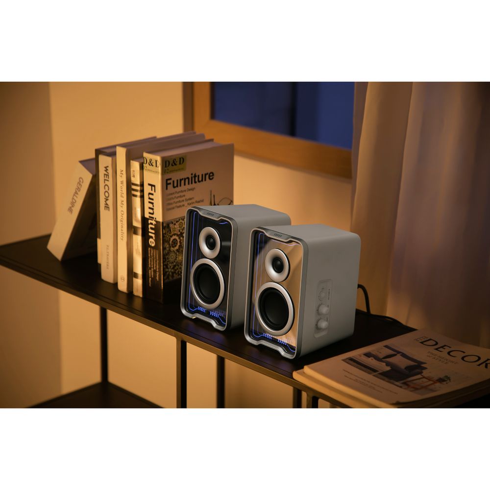 Τα ηχεία Edifier QR30 είναι ιδανικά για να απολαμβάνεις δυναμικό ήχο και μοντέρνο στυλ στην καθημερινότητά σου. Παρά το compact μέγεθός τους, αποδίδουν ισχύ 30W με καθαρά πρίμα και γεμάτο μπάσο, ενώ ο RGB φωτισμός δημιουργεί την ατμόσφαιρα που ταιριάζει σε κάθε στιγμή. Συνδέεσαι εύκολα μέσω Bluetooth 5.4, USB ή AUX και ελέγχεις τα πάντα άμεσα από το πλαϊνό περιστροφικό κουμπί.