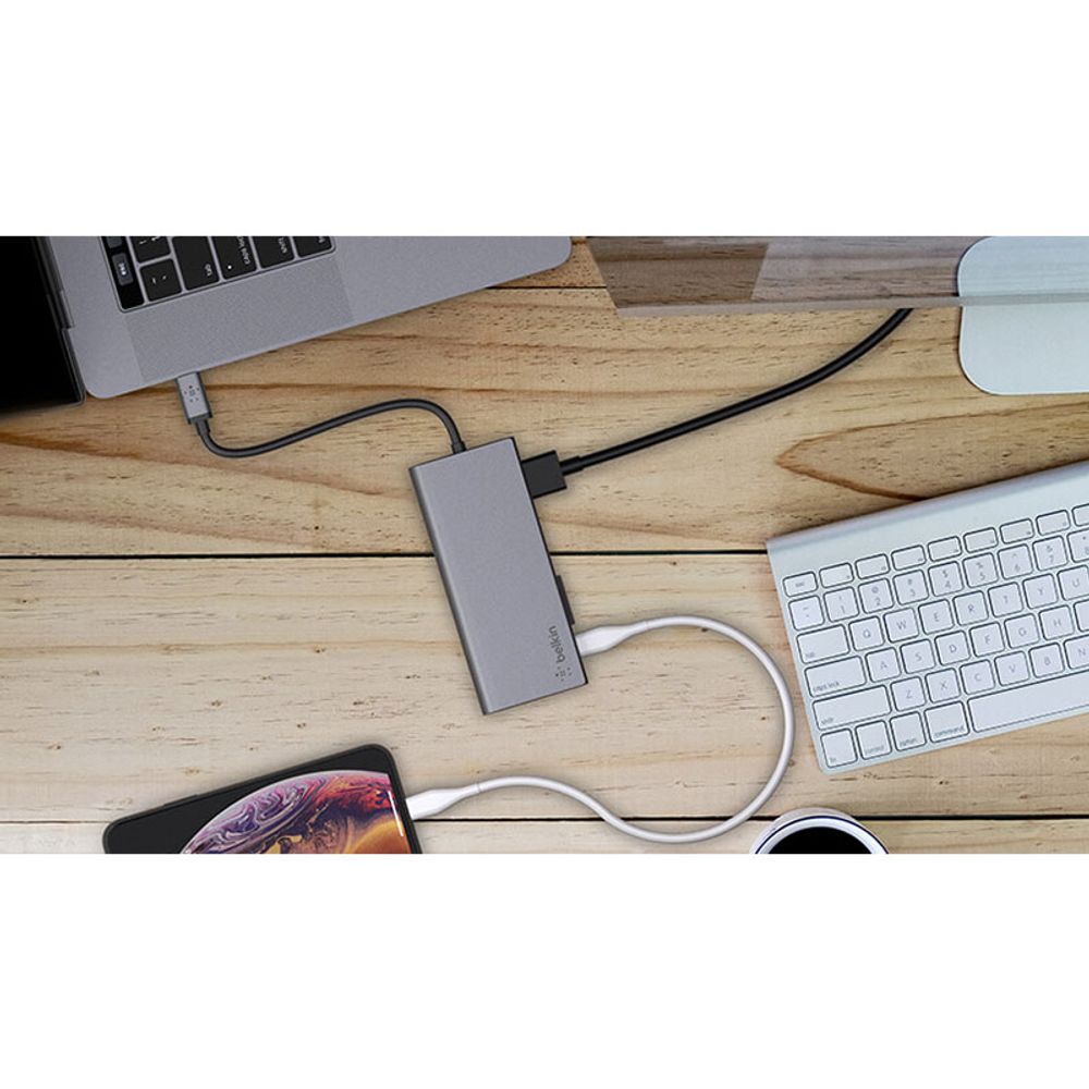 Το hub πολλαπλών θυρών USB-C της Belkin με ταχύτητα έως 5Gbps είναι η τέλεια λύση all-in-one για τη σύνδεση του φορητού υπολογιστή USB-C σε πολλές συσκευές. Υποστηρίζει φόρτιση έως 60W, εξαλείφοντας την ανάγκη επιλογής μεταξύ επέκτασης θύρας και ισχύος και διαθέτει θύρα 1Gb Ethernet για ασφαλή σύνδεση στο Διαδίκτυο. Επιπλέον, χάρη στο συγκεκριμένο hub της Belkin μπορείς να συνδέσεις προβολείς, οθόνες 4K 30Hz, κάρτες SD και USB δίσκους στον φορητό υπολογιστή σου.