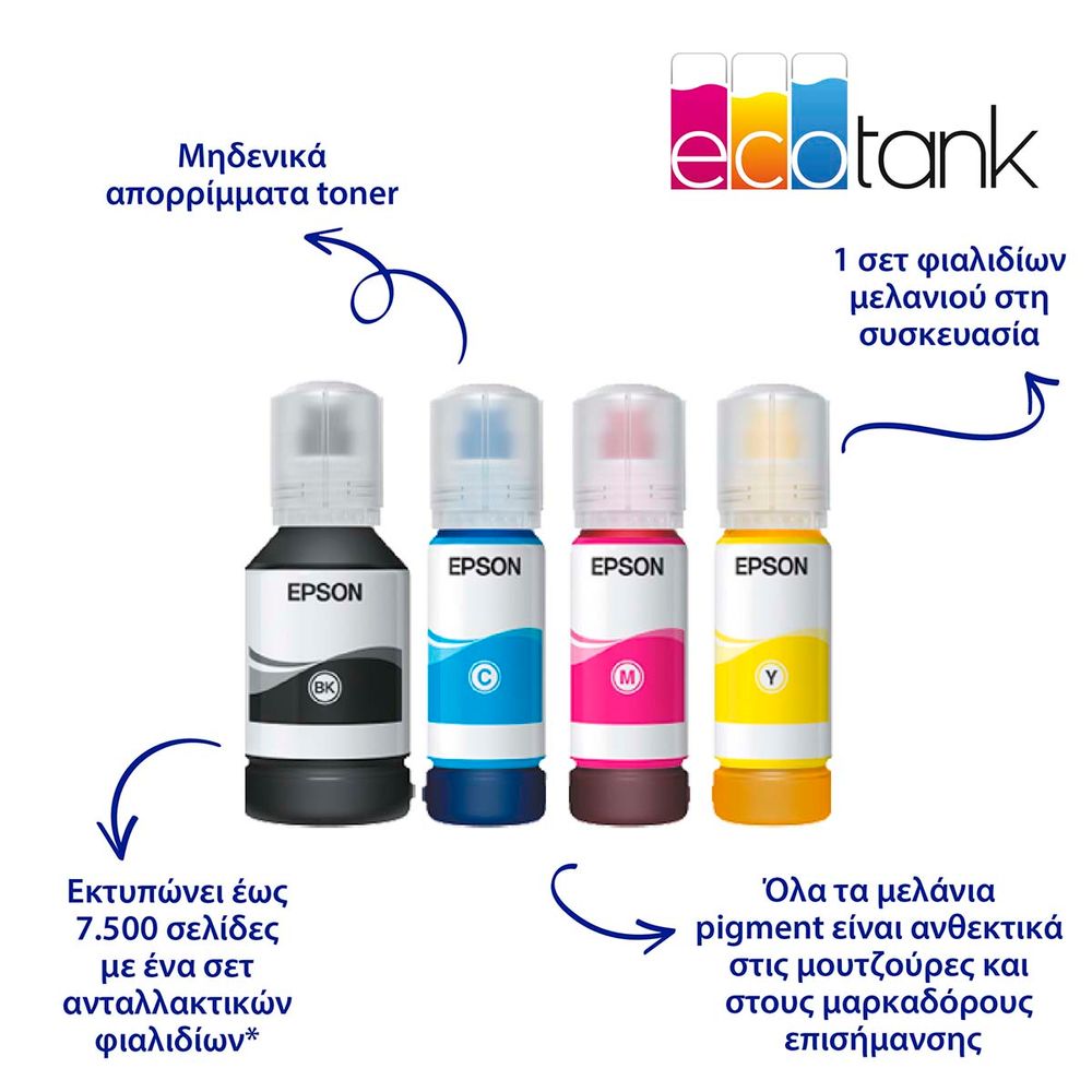 Απόλαυσε γρηγορότερες και φθηνότερες εκτυπώσεις επαγγελματικής ποιότητας, με την πρωτοποριακή σειρά EcoTank, ειδικά σχεδιασμένη για επιχειρήσεις. Επωφελήσου από τη μόνιμη κεφαλή εκτύπωσης, χωρίς κρυφά κόστη και εκτύπωση 1ης σελίδας σε μόλις 5,5 δευτερόλεπτα!
