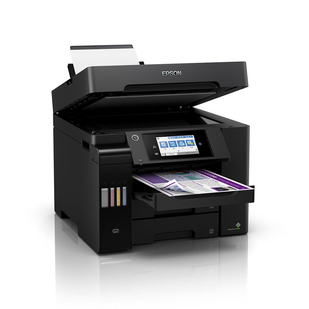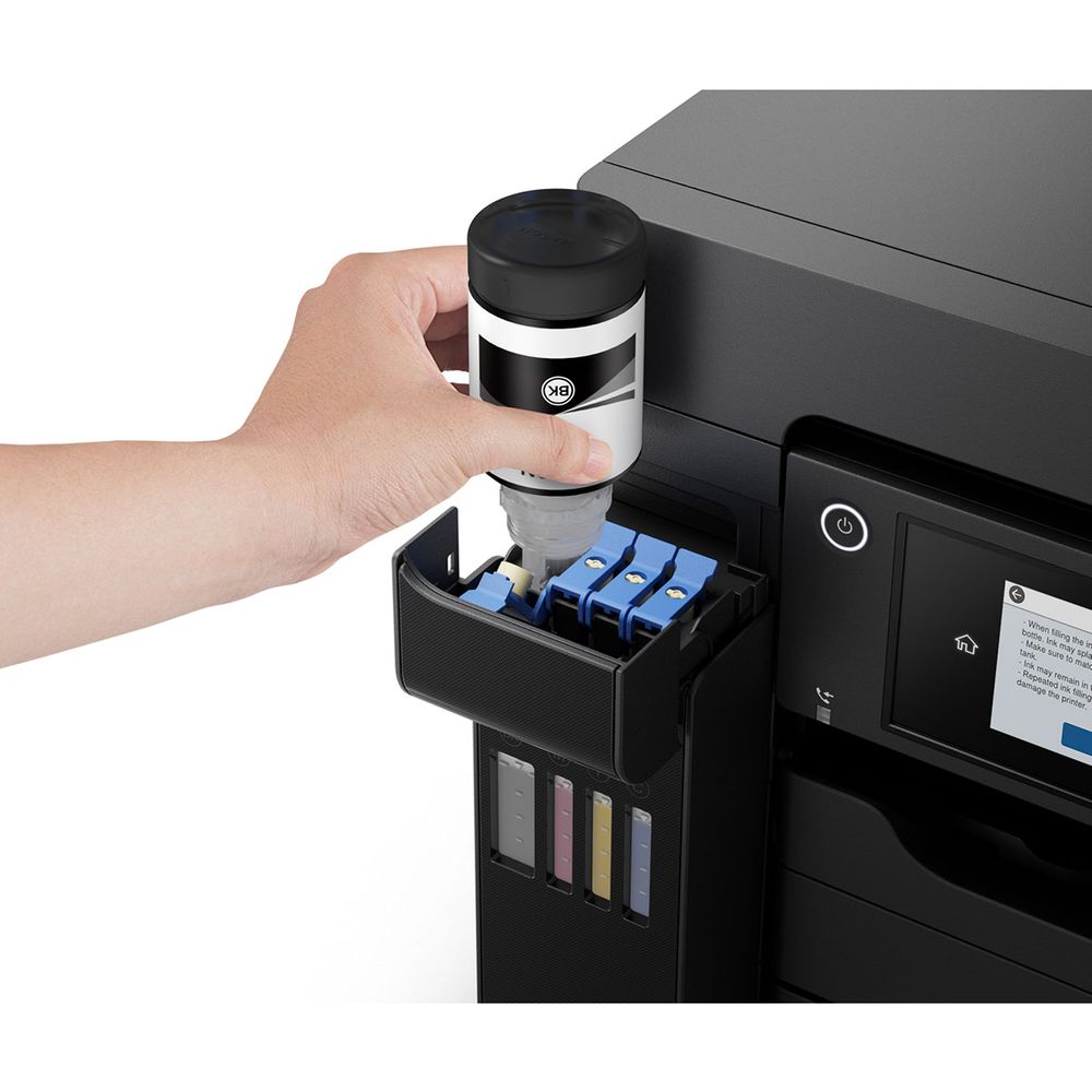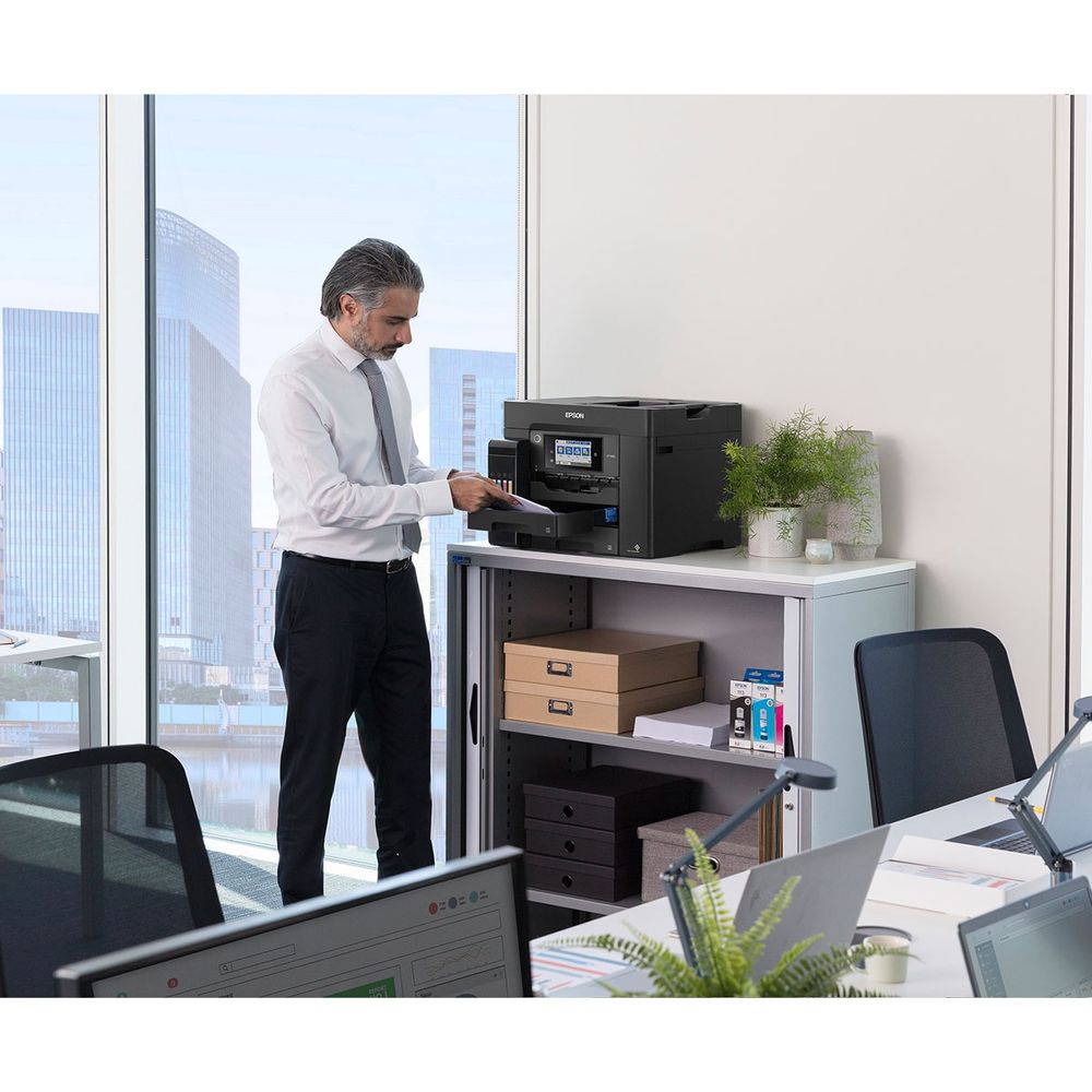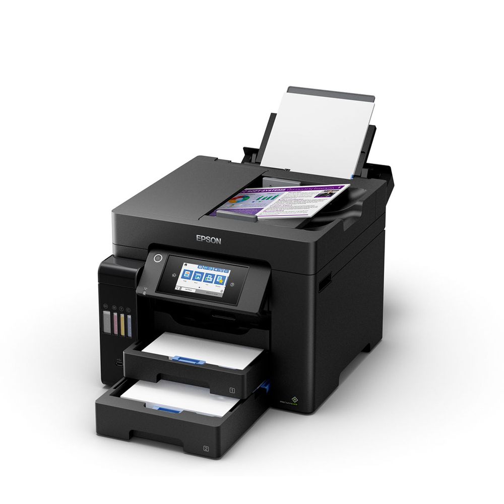 Απαραίτητος για τις επιχειρήσεις, αυτός ο γρήγορος πολυλειτουργικός εκτυπωτής A4 EcoTank διαθέτει δίσκο χαρτιού με χωρητικότητα 500 φύλλων, οπίσθια τροφοδοσία 50 φύλλων, αυτόματο τροφοδότη εγγράφων 50 φύλλων και φαξ. Τα αναπληρούμενα δοχεία μελανιού προσφέρουν μια λύση εκτύπωσης εξαιρετικά χαμηλού κόστους για γραφεία.