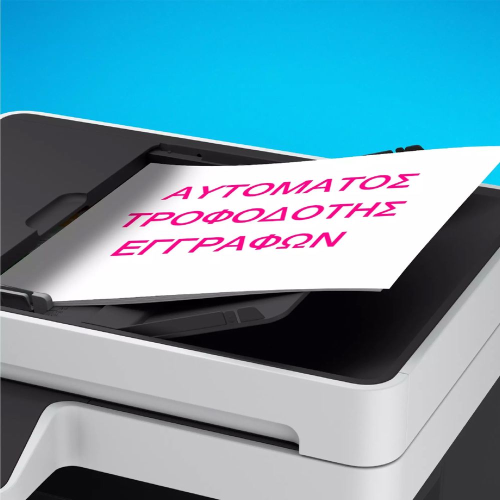 Αυτός ο πολυλειτουργικός εκτυπωτής A4 με φαξ παρέχει εξαιρετικά χαμηλό κόστος εκτύπωσης και υψηλές ταχύτητες εκτύπωσης, χωρίς την ταλαιπωρία της αλλαγής φυσίγγων ή τόνερ. Είναι σχεδιασμένος για οικιακά γραφεία και μικρές επιχειρήσεις, ενώ προσφέρει εξαιρετικά χαμηλό κόστος ανά σελίδα και πολύ υψηλές ταχύτητες εκτύπωσης. Χάρη στον μπροστινό δίσκο 250 φύλλων, την οθόνη αφής LCD 6,1 cm και τον αυτόματο τροφοδότη 35 σελίδων, μπορείς να εκτυπώνεις ασταμάτητα.