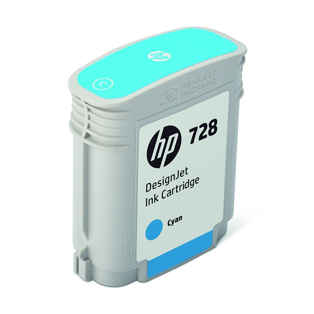 Δοχείο μελάνης HP 728 40-ml Cyan DesignJet Ink Cartridge (F9J63A), συμβατό με εκτυπωτές HP Designjet T730 και T830.