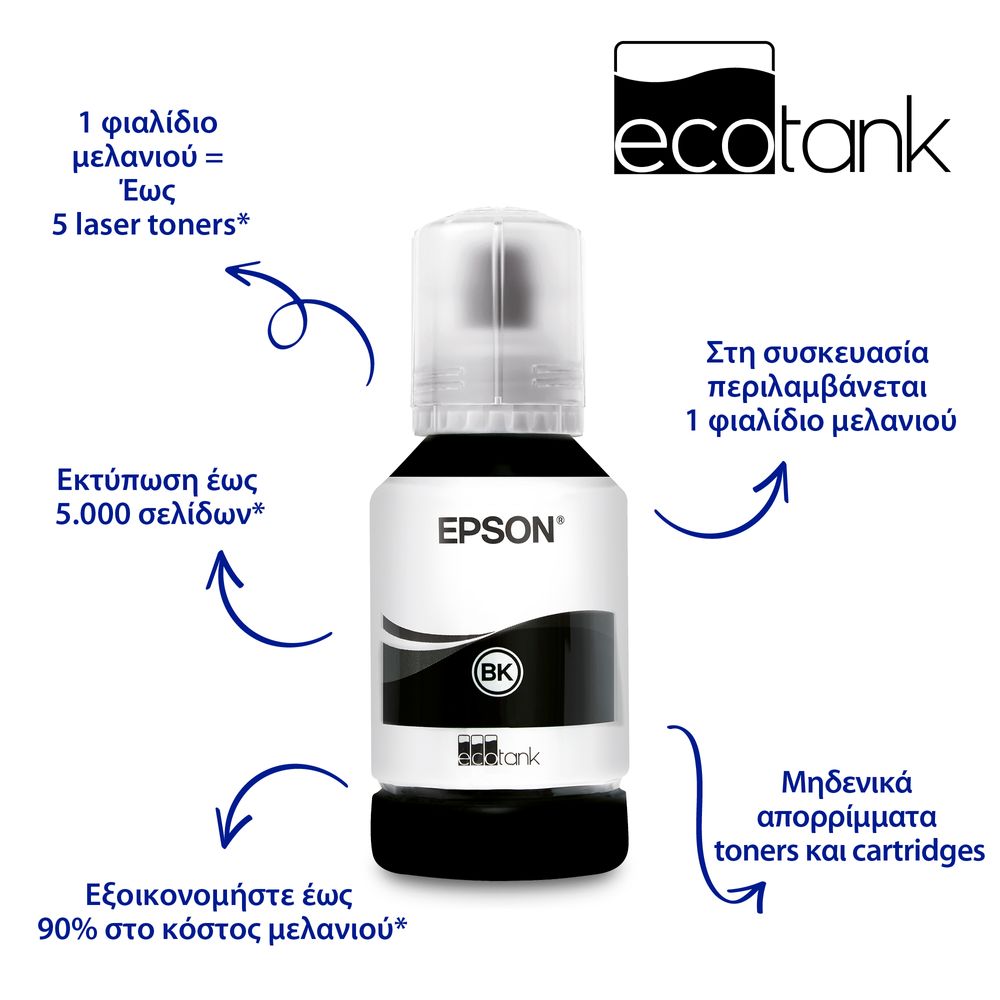 Απόλαυσε γρηγορότερες και φθηνότερες εκτυπώσεις επαγγελματικής ποιότητας, με την πρωτοποριακή σειρά EcoTank, ειδικά σχεδιασμένη για επιχειρήσεις, με μόνιμη κεφαλή. Συμπεριλαμβάνεται μελάνι για εκτύπωση μέχρι και 5.000 σελίδων!