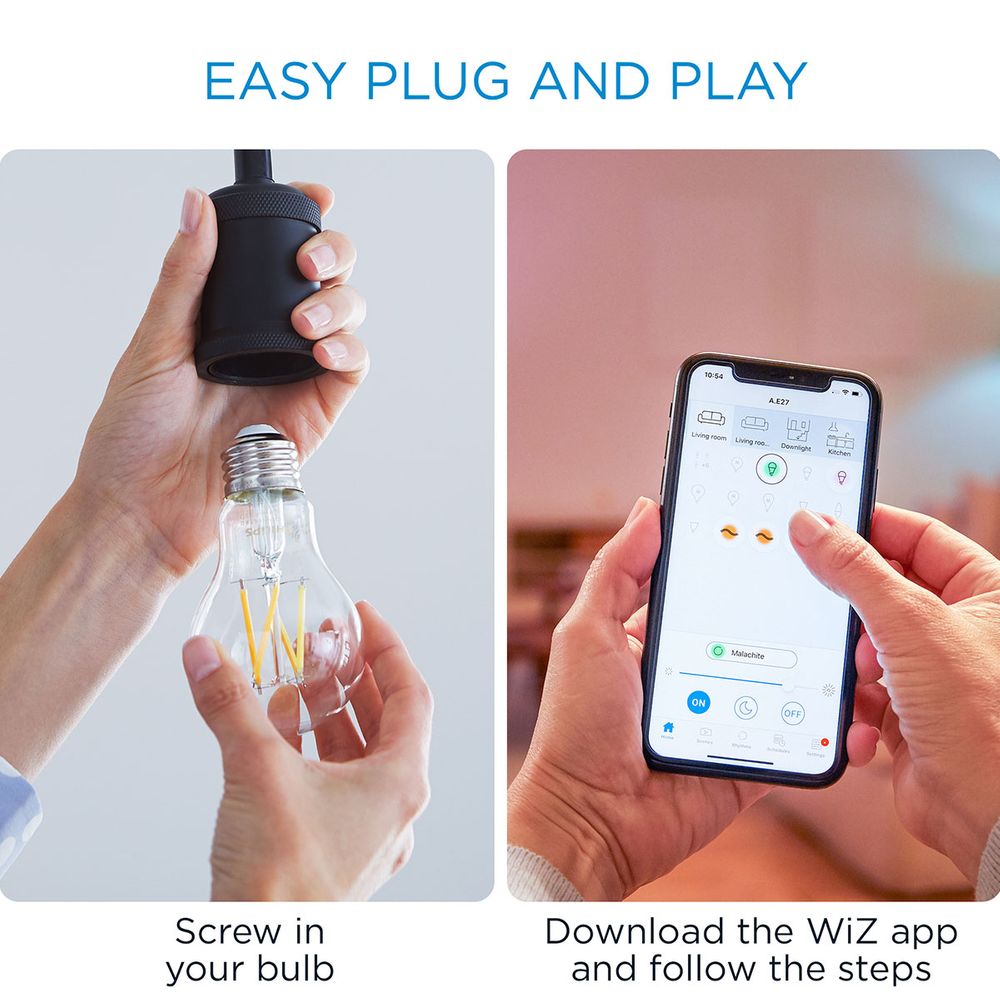 Φώτισε τη ζωή σου με τον «έξυπνο» vintage λαμπτήρα LED της WiZ, που έχει κλασική εμφάνιση με επικάλυψη από κεχριμπάρι, ιδανική για τη διακόσμηση του οποιοδήποτε χώρου. Επίλεξε από διαφορετικές αποχρώσεις ζεστού έως δροσερού λευκού για να δημιουργήσεις την καλύτερη ατμόσφαιρα, ενώ μπορείς επίσης να ορίσεις ένα πρόγραμμα για να ανάβεις και να σβήνεις τα φώτα σύμφωνα με τις καθημερινές ή εβδομαδιαίες ασχολίες σου, να τα ελέγχεις με το smartphone ή τη φωνή σου και να έχεις απομακρυσμένη πρόσβαση!