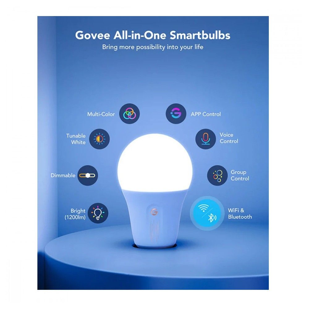 Η λάμπα Govee H6009 Smart Light Bulb φωτίζει το χώρο σου με 1200 lumen, προσαρμόζοντας το φως ακριβώς όπως το θέλεις, για να ταιριάζει με το στυλ και τη διάθεσή σου. Μέσω WiFi και Bluetooth την ελέγχεις εύκολα από το κινητό σου και μπορείς να επιλέξεις χρώμα φωτός (RGBW) και να ρυθμίσεις τη φωτεινότητα ανάλογα με τη διάθεσή σου.