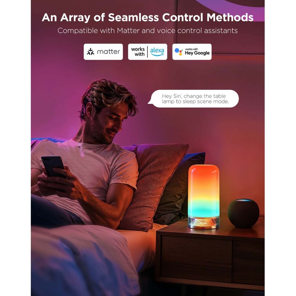 Το επιτραπέζιο φωτιστικό LED της Govee με 16 εκατομμύρια χρώματα RGB και πάνω από 60 σκηνές σου προσφέρει ατμόσφαιρα προσαρμοσμένη στη διάθεσή σου. Ρύθμισε την ένταση και τη θερμοκρασία χρώματος από 2700K έως 6500K, έλεγξέ το εύκολα μέσω αφής, εφαρμογής ή φωνητικά με Alexa και Google Assistant. Δημιούργησε μοναδικά DIY μοτίβα φωτισμού και προγραμμάτισε το χρονοδιακόπτη για ήρεμο ύπνο και ευχάριστο ξύπνημα.