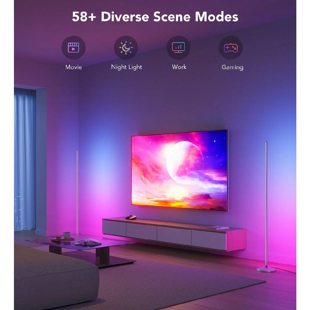 Η μοντέρνα και minimal επιδαπέδια λάμπα Govee RGBICW θα ανανεώσει τον χώρο σου με εντυπωσιακό φωτισμό. Χάρη στην καινοτόμα τεχνολογία RGBICW, μπορείς να δημιουργήσεις μοναδικούς συνδυασμούς χρωμάτων και να μεταμορφώσεις κάθε δωμάτιο. Ενεργοποίησε τη λειτουργία Music Mode για να «χορεύουν» τα φώτα στον ρυθμό της μουσικής σου, έλεγξέ τη με φωνητικές εντολές και εξατομίκευσέ τη με 14 τμηματικούς χρωματικούς ελέγχους μέσω DIY Mode.