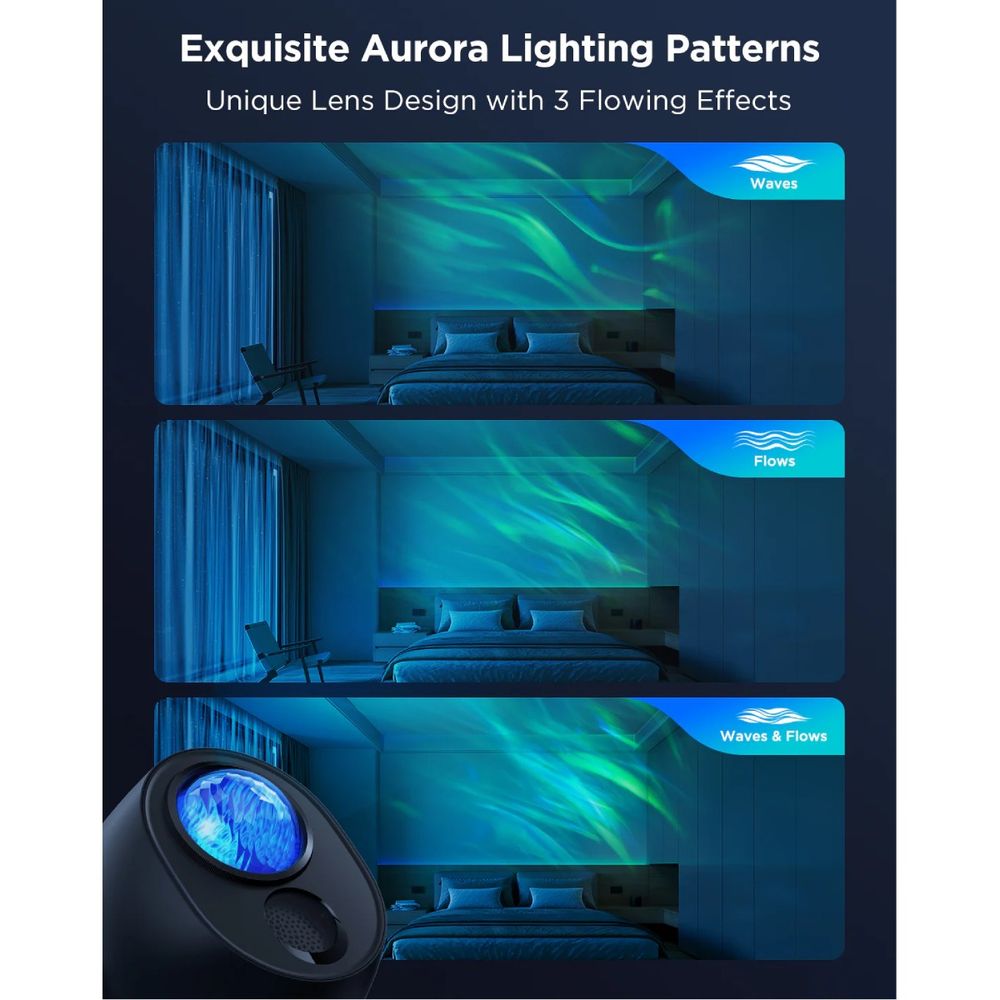 Ο Govee Star Light Projector μετατρέπει το δωμάτιό σου σε έναν χώρο γεμάτο μαγεία με εντυπωσιακό φωτισμό aurora για χαλάρωση ή διασκέδαση. Λειτουργεί αθόρυβα, με ήχους μόλις 30-35dB, που συνδυάζονται αρμονικά με την εμπειρία φωτισμού σου.