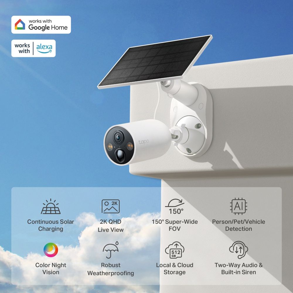 Παρακολούθησε τον χώρο σου αδιάκοπα, με την ασύρματη κάμερα C425. Απόλαυσε μια εμπειρία ασφάλειας χωρίς να χρειάζεται συντήρηση με το Tapo Solar Panel, το οποίο παρέχει συνεχή τροφοδοσία και ευέλικτη εγκατάσταση. Με ανάλυση 2K QHD, καταγράφει λεπτομερείς έγχρωμες εικόνες ακόμα και την νύχτα, ενώ η έξυπνη τεχνητή νοημοσύνη προσδιορίζει με ακρίβεια ανθρώπους, κατοικίδια και οχήματα.