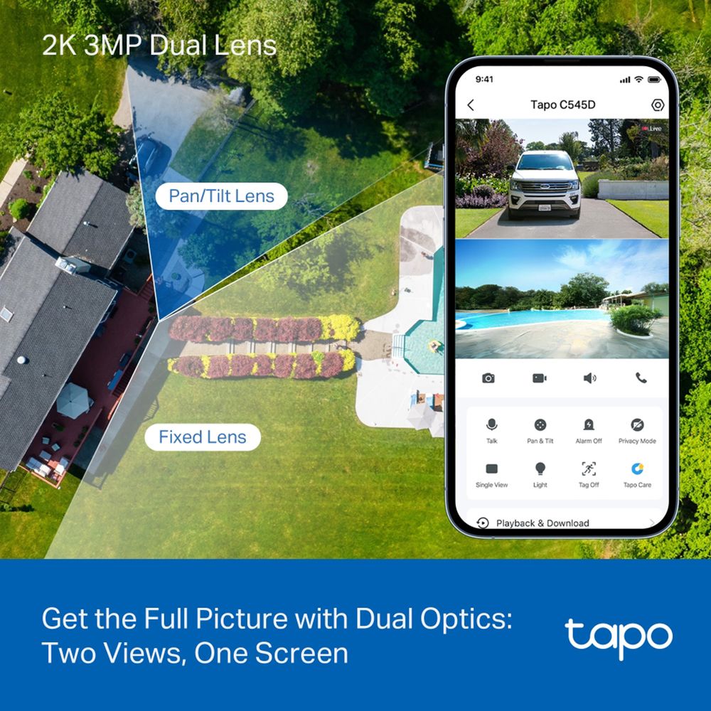 Η Tapo C545D σου προσφέρει ολοκληρωμένη εξωτερική επιτήρηση με διπλό φακό 2K 3MP για ταυτόχρονη παρακολούθηση δύο περιοχών. Με ευρυγώνιο 165° και τηλεφακό 6mm, έξυπνη παρακολούθηση κίνησης, One-Tap Smart Focus και AI ανιχνεύσεις, έχεις πλήρη έλεγχο κάθε στιγμή. Ανθεκτική IP66, με νυχτερινή όραση, Ethernet και αμφίδρομο ήχο, λειτουργεί αξιόπιστα σε κάθε καιρό και συνεργάζεται με Alexa, Google Home και SmartThings.
