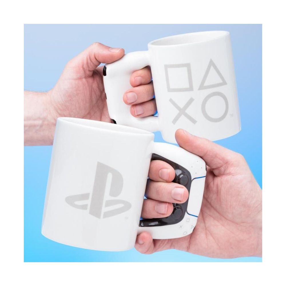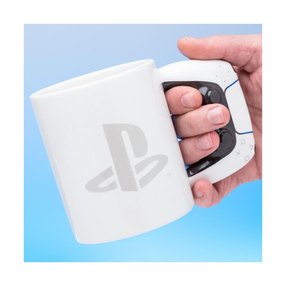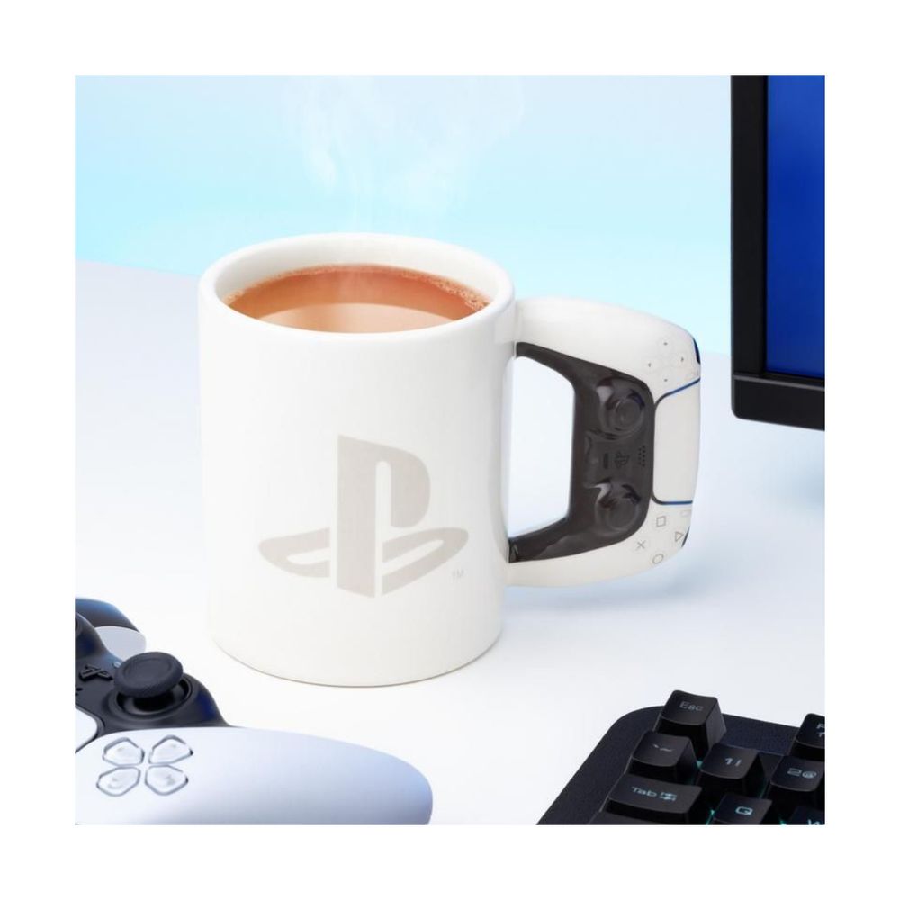 Η κούπα PlayStation 5 Controller Shaped Mug φέρνει την αισθητική του DualSense στην καθημερινότητά σου. Με χωρητικότητα 500ml και λαβή που μιμείται το χειριστήριο του PS5, σου επιτρέπει να απολαμβάνεις τον καφέ ή το τσάι σου ενώ παίζεις ή δουλεύεις. Official PlayStation προϊόν.