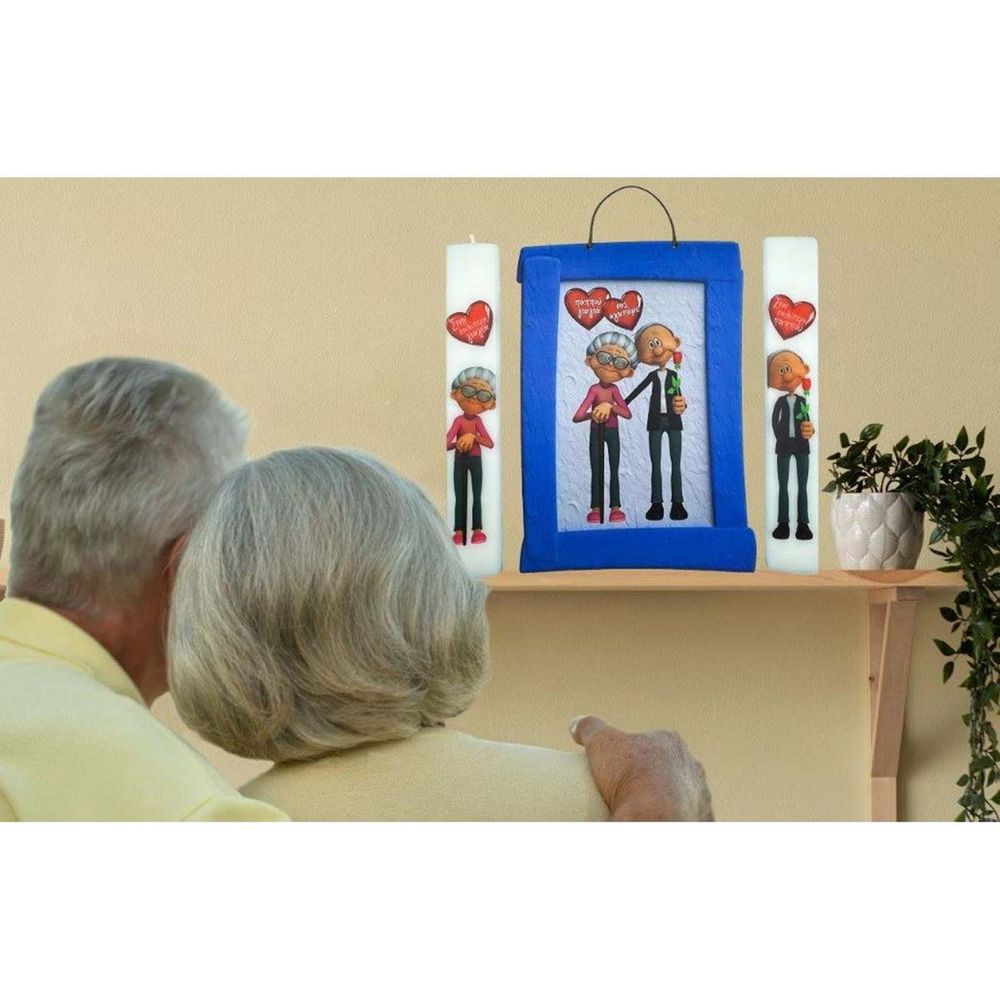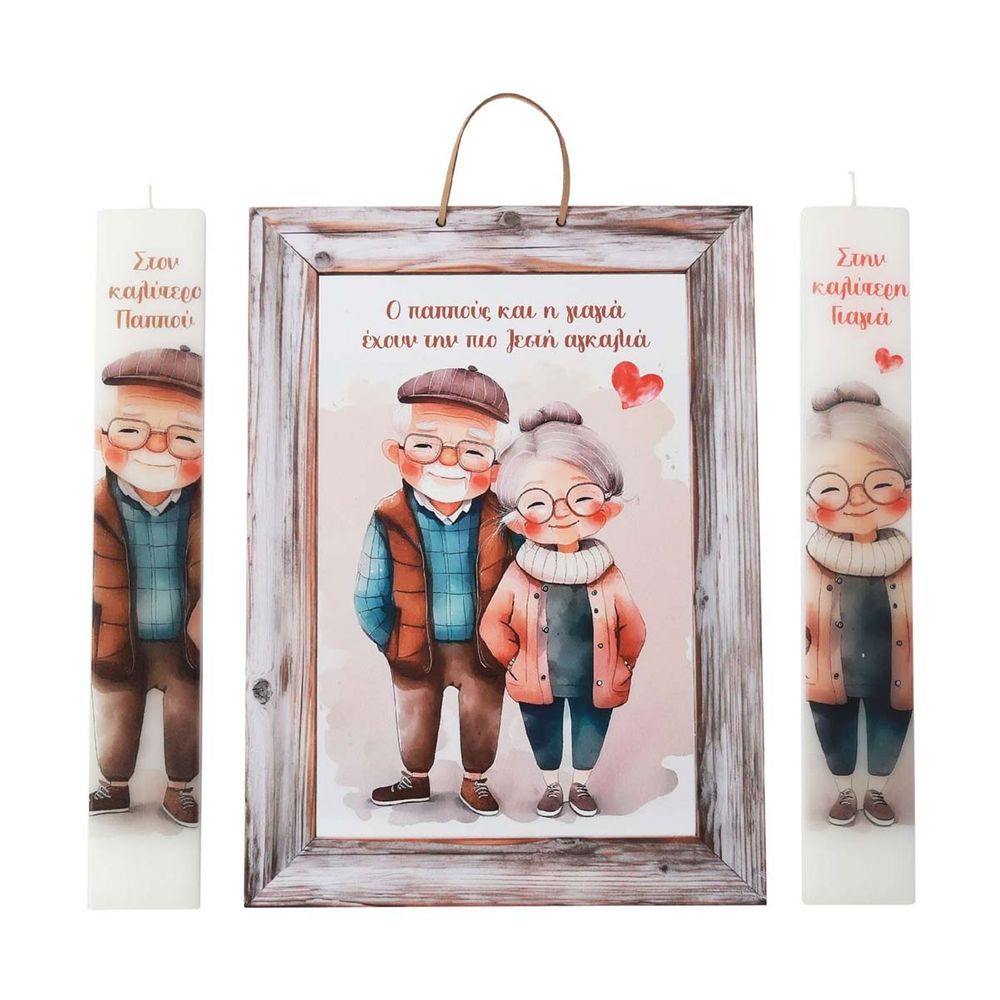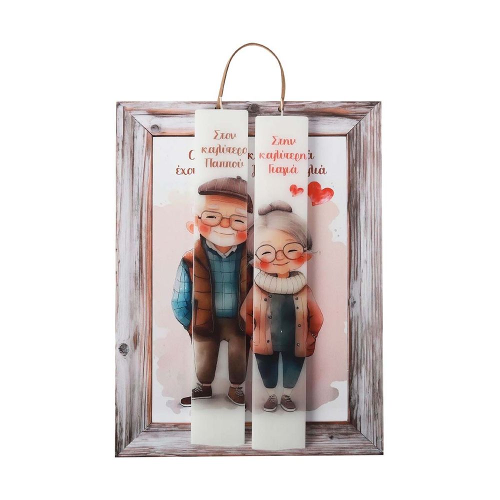 Plotter Line Ζευγάρι Παππούς-Γιαγιά με Ξύλινο Καδράκι Λαμπάδα