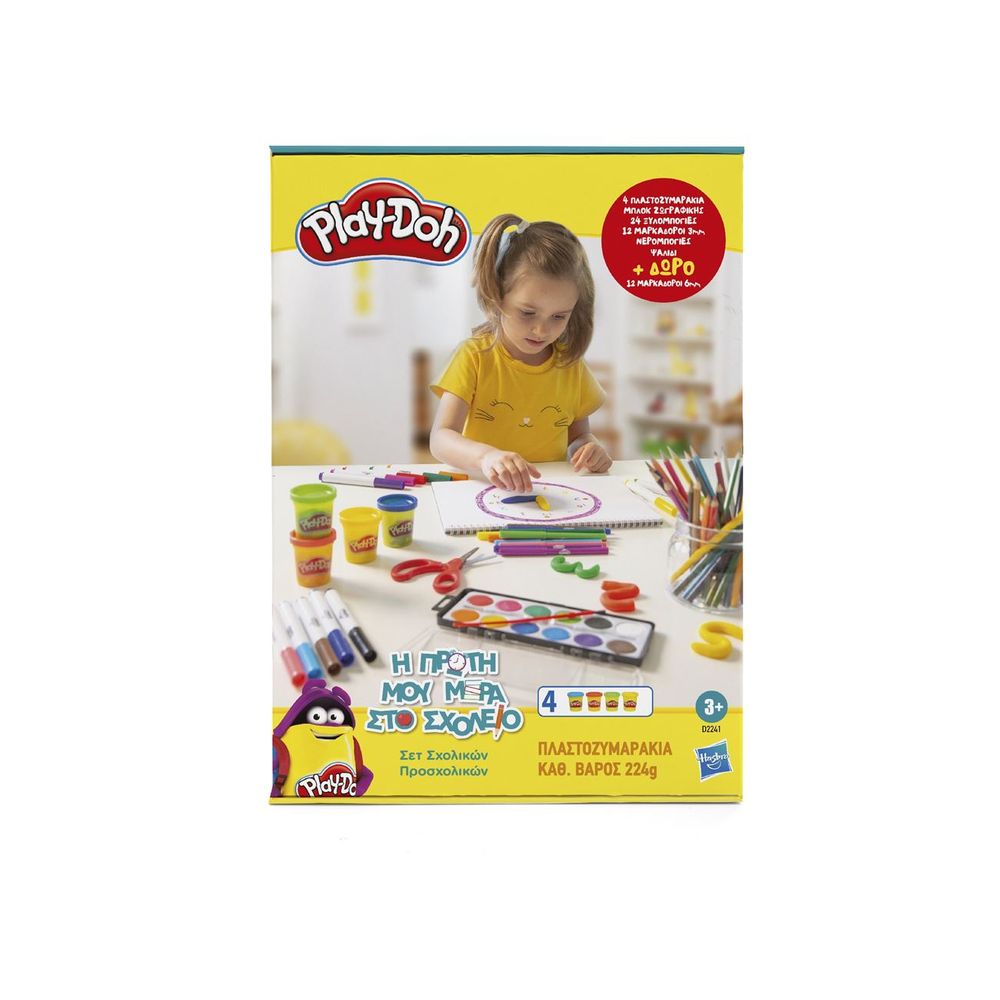 Το απόλυτο σετ δημιουργίας από Play-Doh είναι εδώ, κάνοντας την επιστροφή στο σχολείο πιο εύκολη από ποτέ! Τα παιδιά μπορούν να βρουν όλα αυτά που χρειάζονται για τις σχολικές τους δραστηριότητες σε αυτό το ολοκληρωμένο σετ σχολικών. Περιλαμβάνει 4 πλαστοζυμαράκια, μπλοκ ζωγραφικής, 24 ξυλομπογιές, 12 μαρκαδόρους 3mm, ψαλιδάκι και επιπλέον δώρο 12 μαρκαδόρους 6mm.