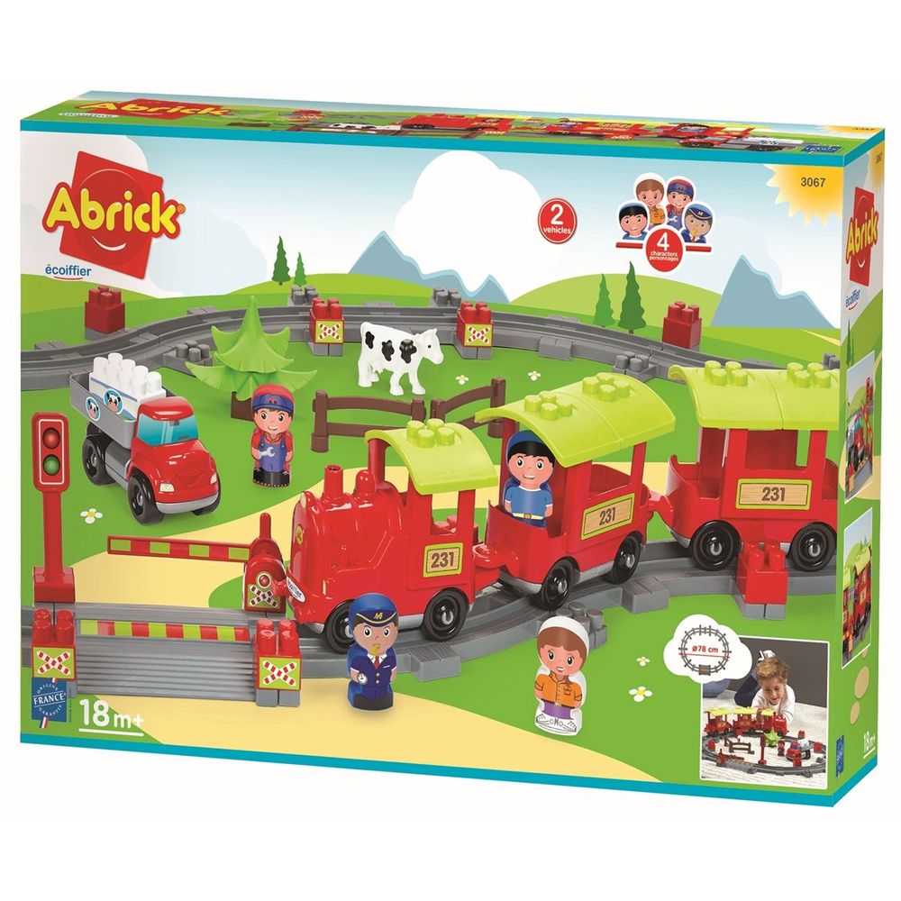 Ένας σιδηρόδρομος του οποίου οι ράγες είναι κατασκευασμένες από τούβλα και πάνω σε αυτές κινούνται 1 τρένο και 2 βαγόνια. Περιλαμβάνονται επίσης 4 φιγούρες, 1 φορτηγό, 2 πόρτες, 1 αγελάδα, 1 έλατο και τούβλα.