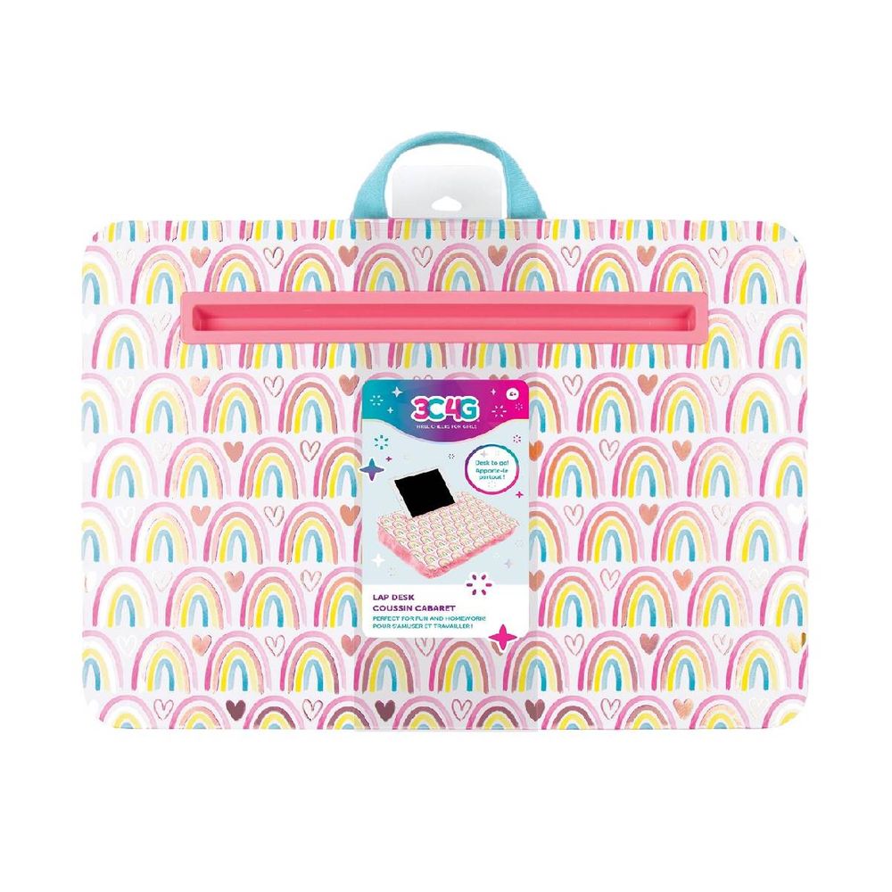 Μοντέρνο «γραφείο» με ξύλινη βάση και σχέδια ουράνια τόξα και καρδούλες, με παχύ μαξιλάρι για μεγαλύτερη άνεση. Διαθέτει υποδοχή πολυμέσων για tablet, τηλέφωνα, στυλό και μολύβια.