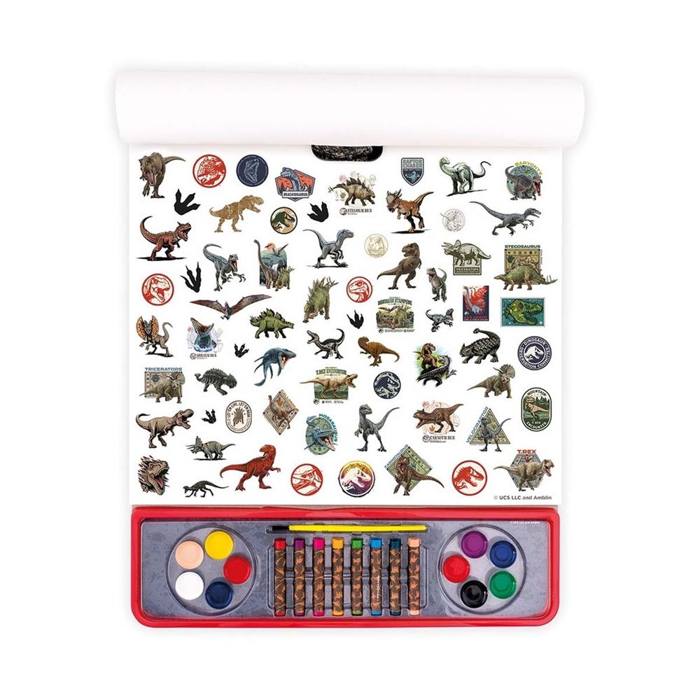Ένα σετ με όλα όσα χρειάζεσαι για να γνωρίσεις το αγαπημένο σου Jurassic World και να τα χρωματίσεις με όμορφα χρώματα, κάνοντάς τα να μοιάζουν αληθινά. Διάλεξε ένα χρώμα από τις κηρομπογιές ή ανάμιξε τα χρώματα νερομπογιάς που θέλεις και χρωμάτισέ τα σε διάφορες σκηνές.