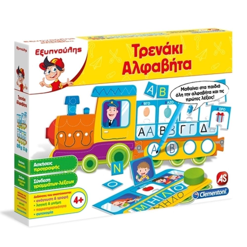 Το τρενάκι μήκους 2 μέτρων, με τις πολύχρωμες κάρτες-παζλ, το σφουγγαράκι και το μαρκαδόρο που σβήνει, μαθαίνει στο παιδί να γράφει την Αλφαβήτα και τις πρώτες τους λέξεις. Περιλαμβάνονται ασκήσεις προγραφής, ενθαρρύνεται ο συσχετισμός γραμμάτων-λέξεων και η σύνθεση των πρώτων λέξεων.
