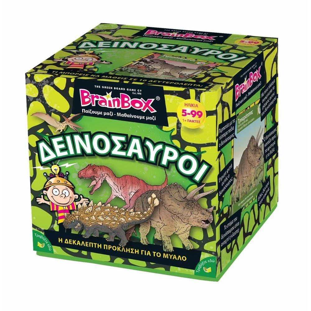 Ανακάλυψε τον κόσμο των δεινοσαύρων!Διάλεξε μια κάρτα μέσα από το BrainBox, αναποδογύρισε την κλεψύδρα και προσπάθησε να μάθεις απ'έξω την κάρτα σε 10 δευτερόλεπτα. Ρίξε το ζάρι και απάντησε σωστά στην αντίστοιχη ερώτηση και μάζεψε τις περισσότερες κάρτες μέσα σε 10 λεπτά.