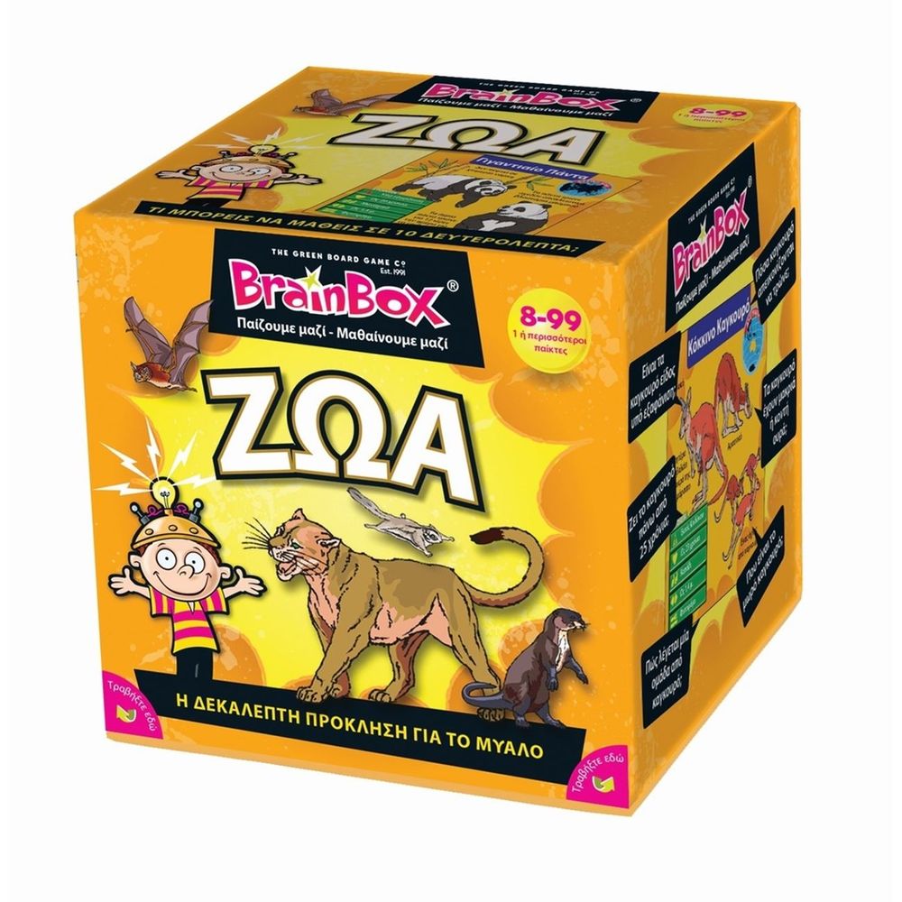 Εξερεύνησε το ζωικό βασίλειο με τον πιο διασκεδαστικό τρόπο! Διάλεξε μια κάρτα μέσα από το BrainBox, αναποδογύρισε την κλεψύδρα και προσπάθησε να μάθεις απ'έξω την κάρτα σε 10 δευτερόλεπτα. Ρίξε το ζάρι και απάντησε σωστά στην αντίστοιχη ερώτηση και μάζεψε τις περισσότερες κάρτες μέσα σε 10 λεπτά. Περιέχονται 70 κάρτες με έγχρωμες εικόνες, κάρτα με κανόνες, κλεψύδρα και ένα ζάρι.
