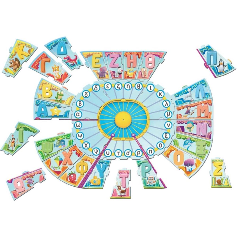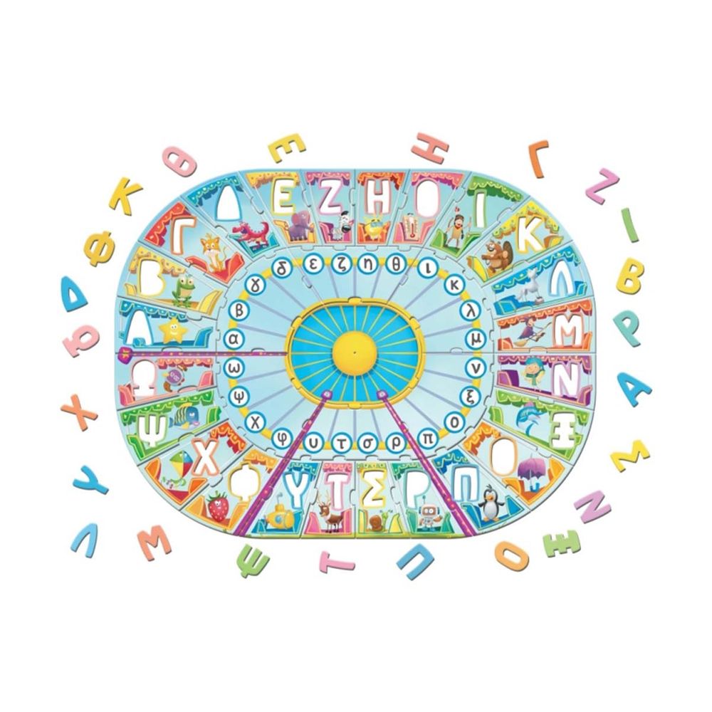 Tο «Μαθαίνω την Αλφαβήτα» είναι ένα παιχνίδι που θα φέρει σε επαφή το παιδί με τα γράμματα της αλφαβήτας. Ξεκίνα να τη μαθαίνεις ενώνοντας τα κομμάτια της ρόδας του λούνα παρκ! Γύρισε το βελάκι στο κέντρο της ρόδας και πες πρώτος μια λέξη που ξεκινάει με το γράμμα που δείχνει το βελάκι! Ψηλάφισε και τοποθέτησε το σωστό γράμμα πάνω σε κάθε βαγονάκι, ταίριαξε τα μικρά με τα κεφαλαία και μάθε απ έξω την αλφαβήτα!