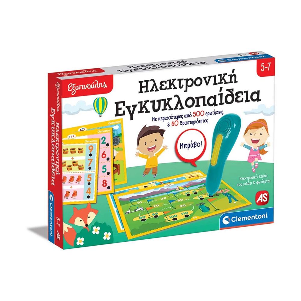 Ηλεκτρονική Εγκυκλοπαίδεια με διαδραστικό στυλό που μιλάει και φωτίζεται! Περιλαμβάνει πάνω από 500 ερωτήσεις και 60 εκπαιδευτικά θέματα. Ένα εκπαιδευτικό παιχνίδι που απευθύνεται σε παιδιά 5 ετών και άνω. Μέσα από παιχνίδια/δραστηριότητες το παιδί θα έρθει σε επαφή με πλήθος θεμάτων τα οποία καλύπτουν πολλούς ενδιαφέροντες τομείς. Απαντώντας στις ερωτήσεις θα μάθει και θα κατανοήσει έννοιες όπως η ορθογραφία, οι αριθμοί και οι πρώτες πράξεις, η φύση, το περιβάλλον και άλλα πολλά.