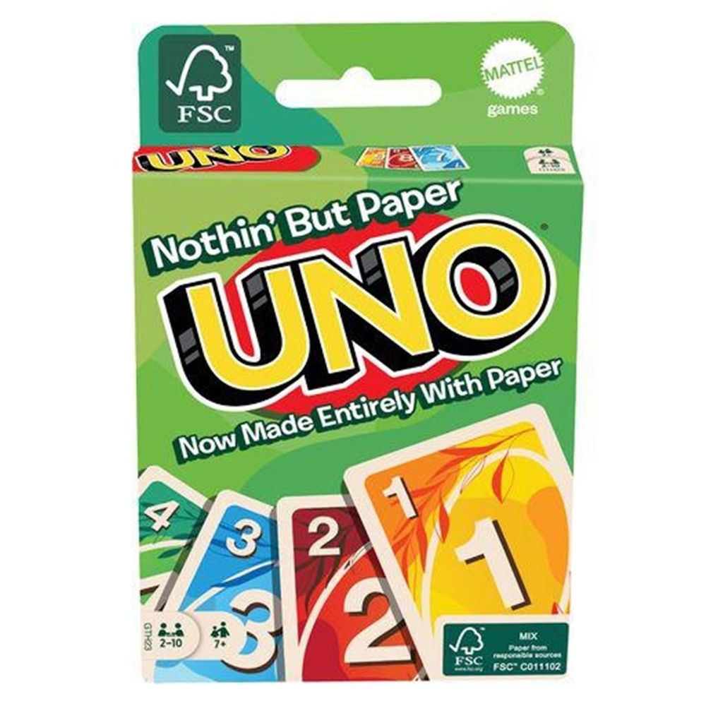 Το αγαπημένο παιχνίδι καρτών Uno έγινε οικολογικό! Αυτή η ειδική έκδοση, κατασκευασμένη αποκλειστικά από χαρτί, είναι 100% ανακυκλώσιμη. Το παιχνίδι παίζεται ακριβώς όπως το κλασικό UNO, με μπαλαντέρ και κάρτες δράσης.