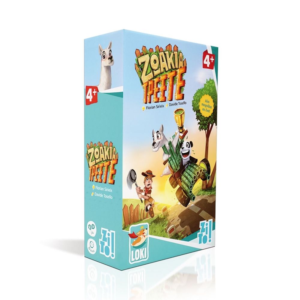 Τρελές περιπέτειες με τα ζώα του ζωολογικού κήπου, σε περιμένουν σε αυτό το διασκεδαστικό επιτραπέζιο παιχνίδι, που παίζεται με δύο τρόπους.Τοποθέτησε τις κάρτες σου ώστε να σχηματίζουν ολοκληρωμένα ζωάκια και συνεργάσου για να τα βοηθήσεις να δραπετεύσουν από τον κήπο προτού έρθει ο φύλακας και κλείσει την πύλη ή βοήθησε το αγαπημένο σου ζωάκι να περάσει τη γραμμή του τερματισμού και να κερδίσει τον αγώνας της χρονιάς.