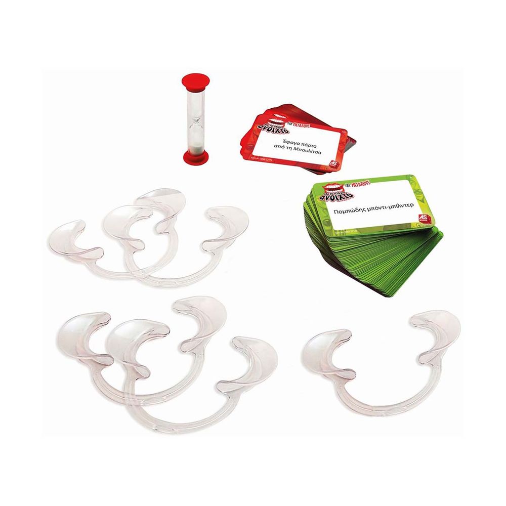 Το παιχνίδι που θα κάνει εσένα και την παρέα σου να κλάψετε από τα γέλια. Μαζευτήκατε σπίτι και ψάχνετε ένα καθόλου βαρετό επιτραπέζιο; Αν ναι, αυτό είναι το παιχνίδι που ψάχνετε! Φόρεσε το ειδικό μασελάκι, τράβηξε μια κάρτα και προσπάθησε να πεις τη φράση που είναι γραμμένη στην κάρτα. Θα καταλάβει η ομάδα σου τι προσπαθείς να περιγράψεις;