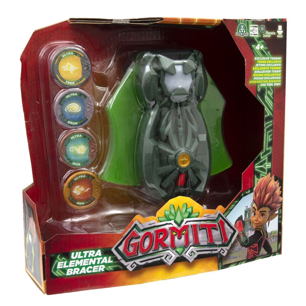 Απέκτησε τη δύναμη Μέκα όπως οι ήρωες του Gorm με το Ultra Elemental Bracer! Φόρεσέ το, τοποθέτησε τα φυλαχτά και κάλεσε τους θρυλικούς Gormiti! Πάτησε το κουμπί για να άνοιξεις την Ασπίδα Ενέργειας Μέκα ή να εκτοξεύσεις το φυλαχτό. Η συσκευασία περιλαμβάνει 4 φυλαχτά των ηρώων.