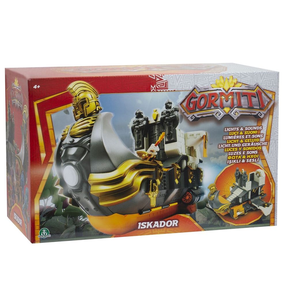Σετ παιχνιδιού Iskador που απεικονίζει το ιπτάμενο σκάφος των Gormiti Alfa! Μετατρέπεται από ιπτάμενο πλοίο σε φρούριο μάχης των Gormiti και διαθέτει καταπέλτη, παγίδες, πυραύλους, φως και ήχο!