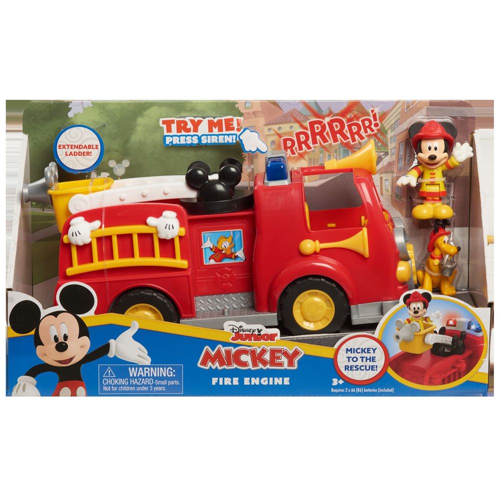 Ο Μίκυ έρχεται να σώσει την ημέρα με αυτό το πυροσβεστικό όχημα με φώτα και ήχους, εμπνευσμένο από την εκπομπή Mickey Mouse Clubhouse Adventures της Disney Junior. Με διασκεδαστικές φράσεις του Μίκυ και αληθινά ηχητικά εφέ πυροσβεστικής μηχανής και νερού. Το πυροσβεστικό όχημα περιλαμβάνει επίσης μία φιγούρα Μίκυ 7,5 cm. με αρθρώσεις και μία φιγούρα του Πλούτο. Τα παιδιά μπορούν να τοποθετήσουν τον Μίκυ και τον Πλούτο στην καμπίνα και το παιχνίδι ξεκινά!