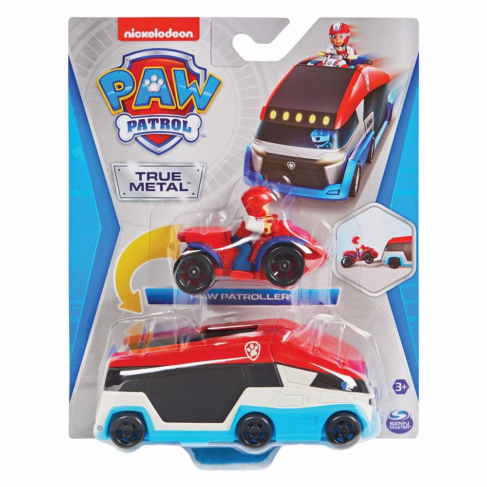 Έφυγες για διάσωση με το Μεταλλικό πούλμαν, 4τροχη γουρούνα Paw Patrol με φιγούρα Ράιντερ! Αυτό το μεγάλο μεταλλικό όχημα χωράει όλη την ομάδα και είναι ένα από τα μεγαλύτερα οχήματα Paw Patrol που έγιναν ποτέ. Έχει μήκος πάνω από 12.5 cm. και περιλαμβάνει την 4τροχη γουρούνα του Ράιντερ σε κλίμακα 1:55, που παρκάρει απευθείας μέσα στο πούλμαν Paw Patrol! Κατέβασε τη ράμπα στο πίσω μέρος και οδήγησε το 4τροχο μέσα στο όχημα. Κλείσε τη ράμπα και ξεκίνα για την επόμενη αποστολή διάσωσης!