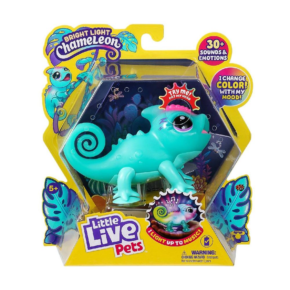 Ο Λέων ο χαμαιλέων είναι το νέο σου κατοικίδιο που αλλάζει χρώματα ανάλογα με τη διάθεσή του! Πρόκειται για ένα διαδραστικό, φωτεινό χαμαιλέοντα με πάνω από 30 ήχους και συναισθήματα. Φωτίζεται με ανοιχτό πράσινο χρώμα και χαχανίζει όταν είναι χαρούμενος, με κόκκινο χρώμα όταν είναι θυμωμένος ενώ όταν γίνεται μπλε κλαψουρίζει γιατί είναι λυπημένος! Όταν ο Λέων νιώθει σούπερ ευτυχισμένος, τραγουδά και λάμπει με τα όμορφα χρώματα του ουράνιου τόξου.