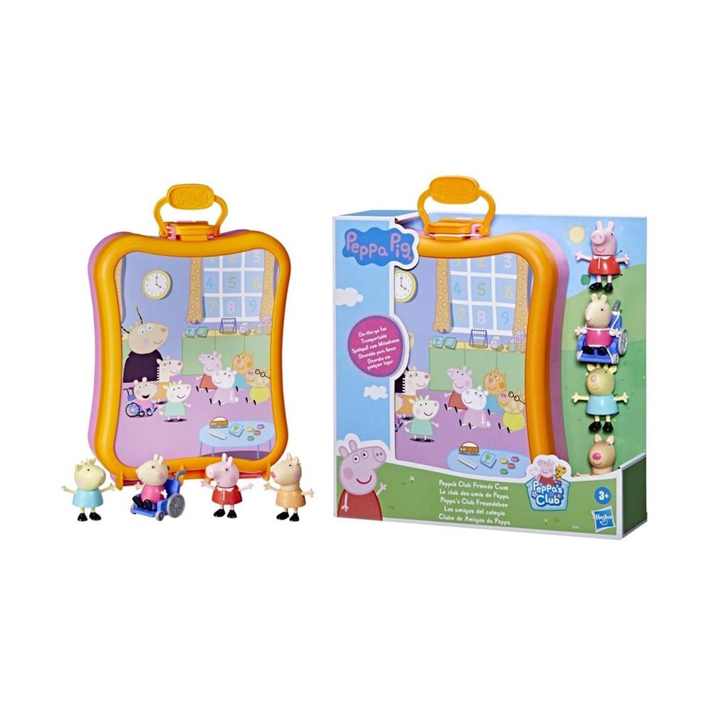 Τα παιδιά μπορούν να δημιουργήσουν περιπέτειες με την Peppa Pig και τρεις από τις φίλες της, τη Lottie Llama, τη Gabriella Goat και τη Mandy Mouse. Και οι 4 φιγούρες (συν το αξεσουάρ αναπηρικό καροτσάκι της Mandy Mouse) χωράνε άνετα στη θήκη, κάνοντας την αποθήκευση πολύ πιο εύκολη. Η λαβή μεταφοράς της θήκης την κάνει υπέροχη για παιχνίδι εν κινήσει!