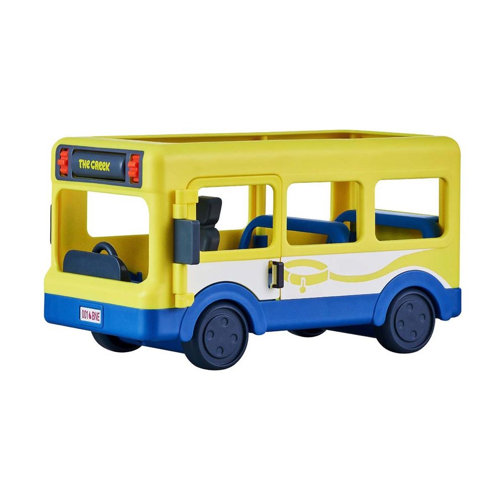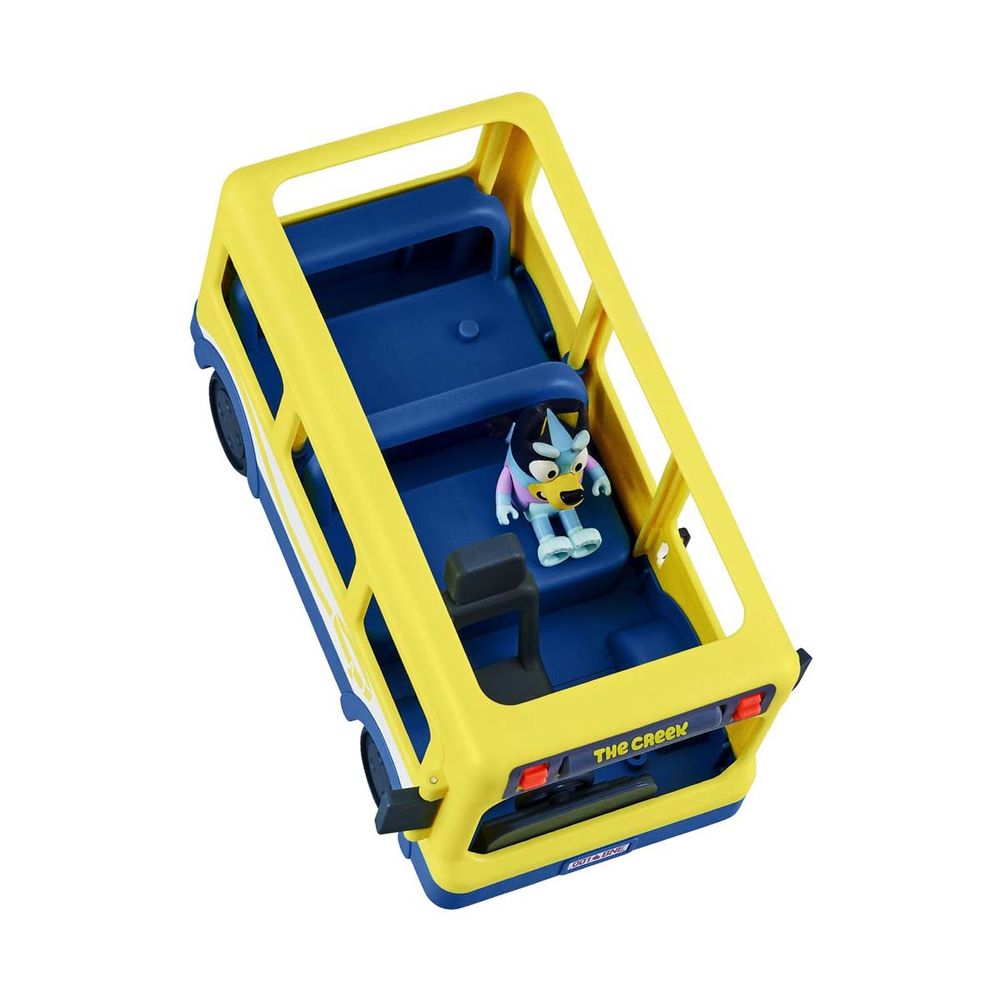 Bluey & Bingo μπαίνουν στο λεωφορείο και φεύγουν για βόλτες και περιπέτεια με όλους τους φίλους τους! Σετ παιχνιδιού που περιλαμβάνει όχημα-λεωφορείο και 2 αποκλειστικές φιγούρες 6 cm. Bluey & Bingo, με κινούμενα χέρια/πόδια. Στο λεωφορείο χωράνε έως 6 φιγούρες, διαθέτει αληθινά κινούμενες ρόδες και ανοιχτή οροφή. Μετακίνησε τη ροδέλα στο πάνω μέρος του οχήματος για να επιλέξεις τον προορισμό της Bluey!