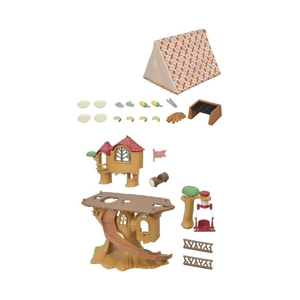 Πάνω στους λόφους θα βρεις την πιο όμορφη λίμνη και το Adventure Tree house. Με πολλά δωμάτια και ακόμη και ένα μυστικό πέρασμα ειδικά για τα μωρά, οι Sylvanians δεν θα στερηθούν ποτέ την περιπέτεια εδώ. Αυτό το σετ δώρου έκδοσης για κάμπινγκ περιλαμβάνει επίσης μια πολύχρωμη σκηνή και ένα μπάρμπεκιου από τούβλα με φαγητό, καθώς και την αδερφή της καμηλοπάρδαλης Brie Highbranch και τα αξιόπιστα κιάλια της.