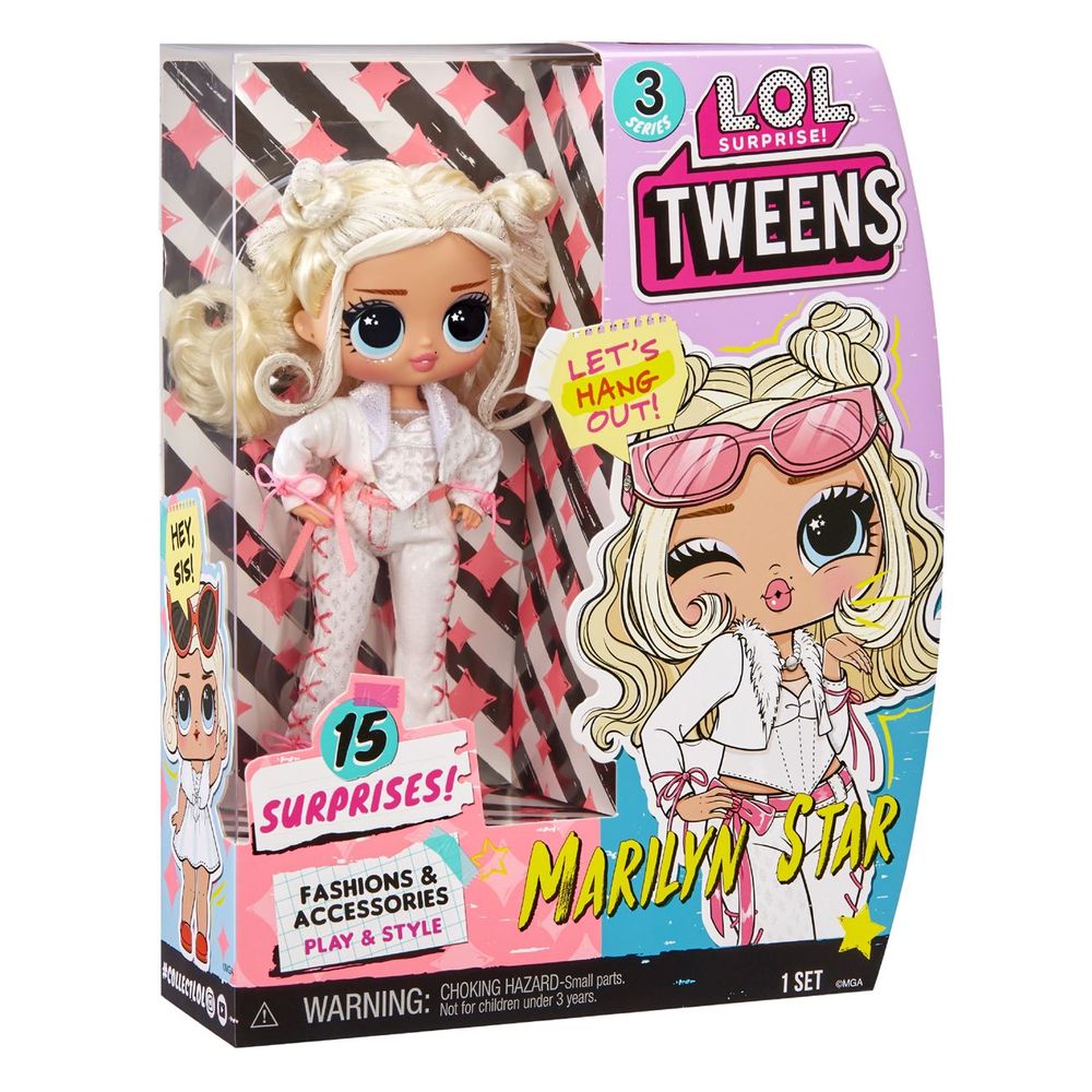 Kούκλα L.O.L. Surprise Tweens! Μοναδικές κούκλες μόδας για μοναδικές στυλάτες εκπλήξεις! Γνώρισε την Marilyn Star και ετοιμάσου για την πιο μοδάτη unboxing εμπειρία! 15 εκπλήξεις σε περιμένουν να τις ανακαλύψεις! Με επαναχρησιμοποιούμενη συσκευασία που λειτουργεί για εξτρα παιχνίδι! Το σετ περιλαμβάνει κούκλα 15cm, αξεσουάρ, χτενάκι, τσαντούλα, βάση στήριξης κούκλας, αυτοκόλλητα.