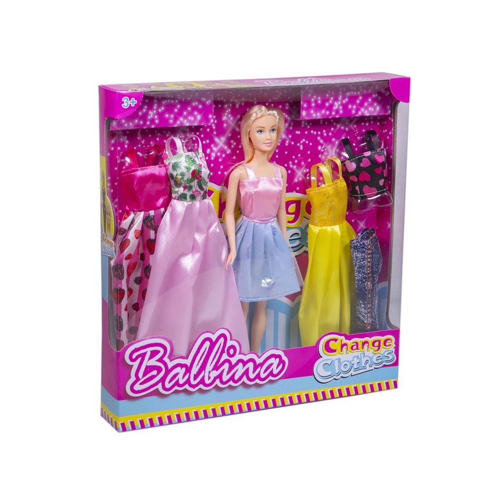 Η Ballina έχει τη δική της γκαρνταρόμπα. Είναι έτοιμη να κάνει τόσο τις απογευματινές όσο και τις βραδινές εμφανίσεις με κομψά φορέματα και παντελόνια που της ταιριάζουν πολύ. Η Ballina φοράει ένα απογευματικό φόρεμα με ροζ τοπ και σιέλ μίντι φούστα. Η συσκευασία περιλαμβάνει 3 ακόμη φορέματα, ένα φούξια με φραουλίτσες, ένα ροζ με εμπριμέ πράσινο τοπ, ένα κίτρινο και ένα παντελόνι μπλε και τοπ με καρδούλες.