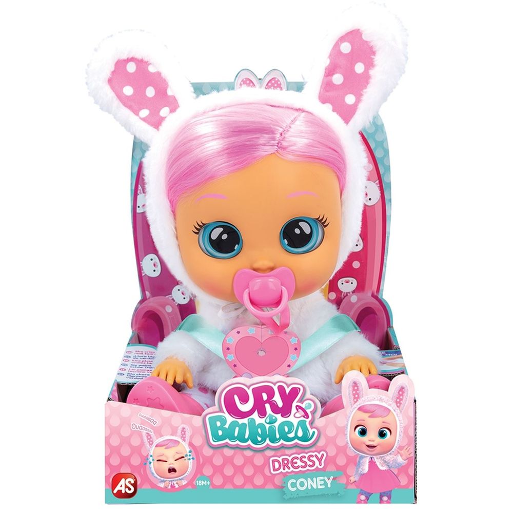Τα αγαπημένα σου Cry Babies μεταμορφώνονται! Έχουν αληθινά μαλλιά, γυάλινα μάτια, ακόμα πιο γλυκό πρόσωπο, λιγότερο βάρος και φοράνε ρούχα και παπούτσια για πρώτη φορά! Ανακάλυψε όλους τους χαρακτήρες Cry Babies Dressy! H Coney είναι το πιο ευγενικό και γλυκό Κλαψουλίνι και λατρεύει να φτιάχνει γλυκά. Φοράει το πιο ωραίο ροζ φορεματάκι και ταιριαστά παπουτσάκια. Με το γούνινο ζακετάκι της που θυμίζει κουνελάκι είναι ακόμα πιο γλυκιά! Απλά πρόσθεσε νερό και θα κλάψει με πραγματικά δάκρυα!